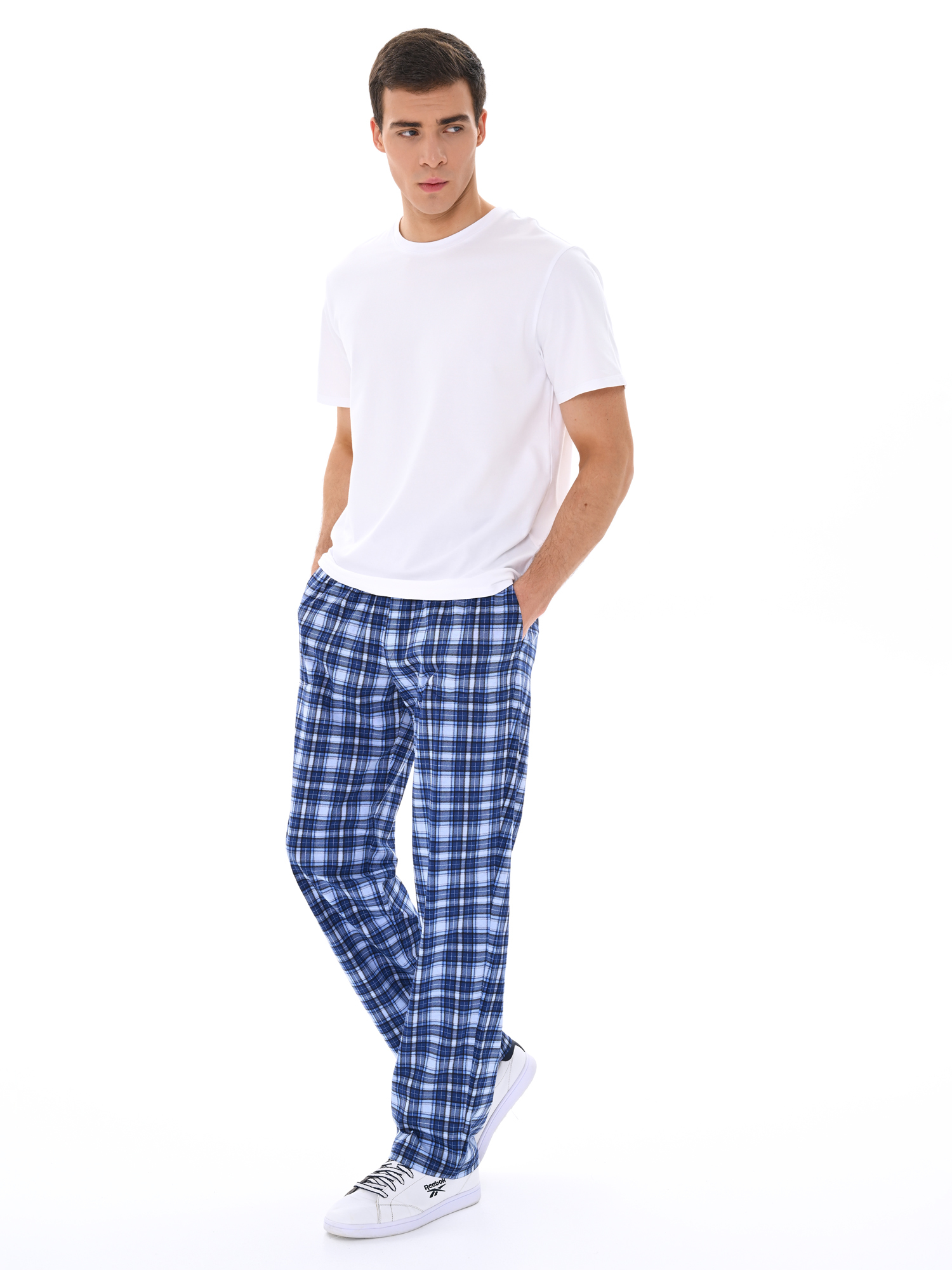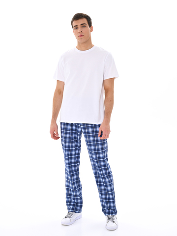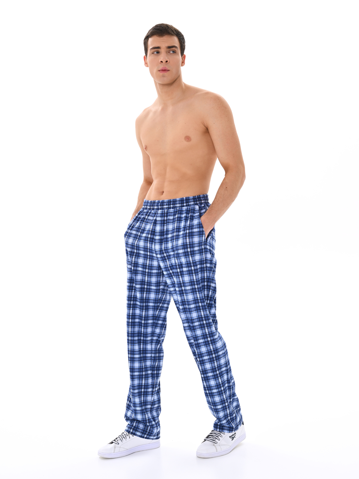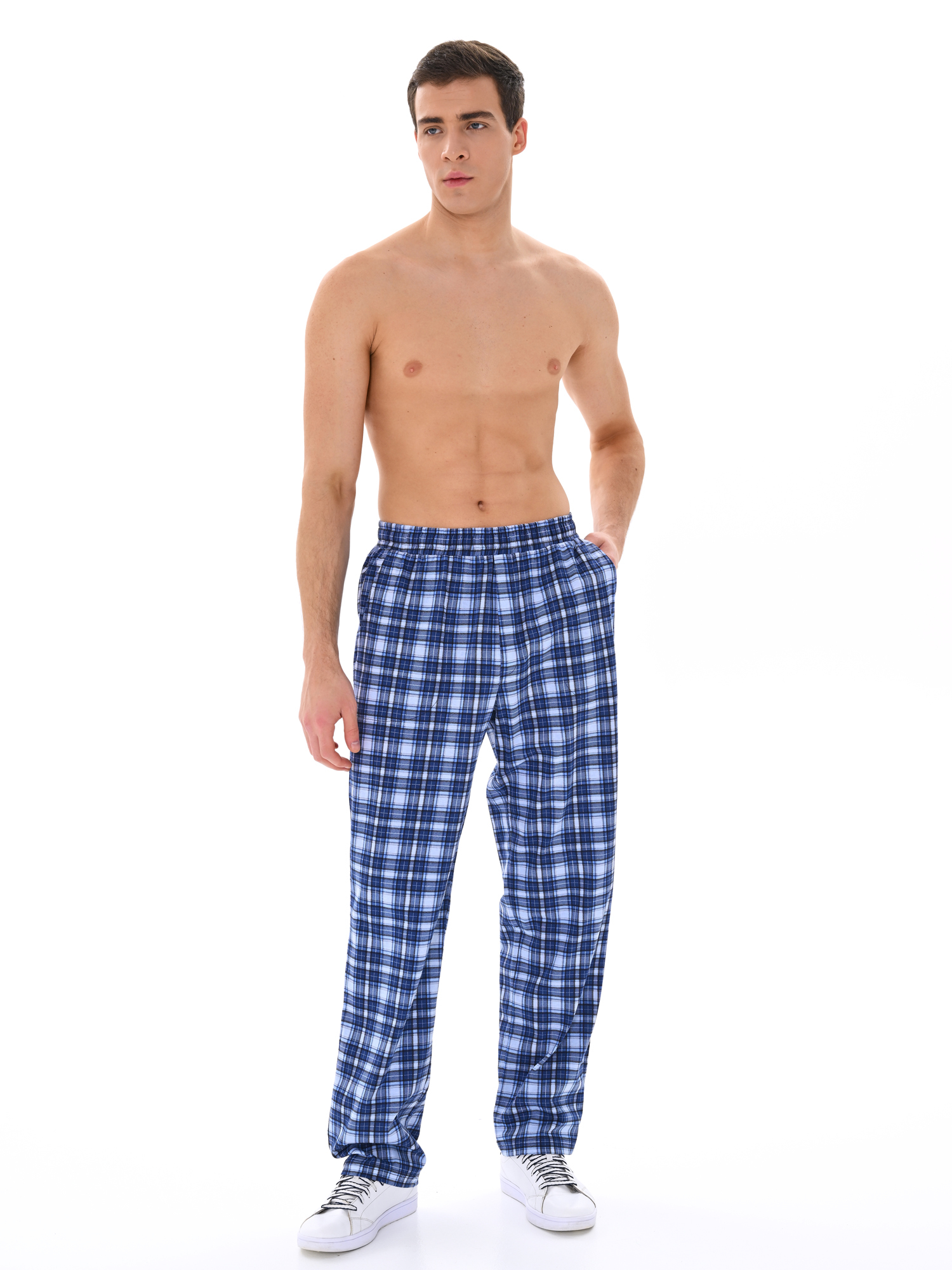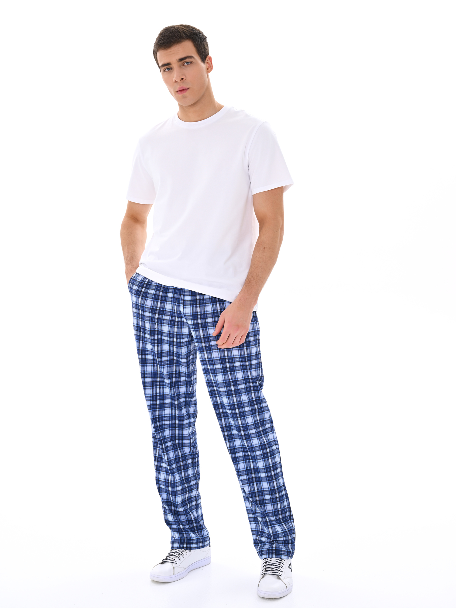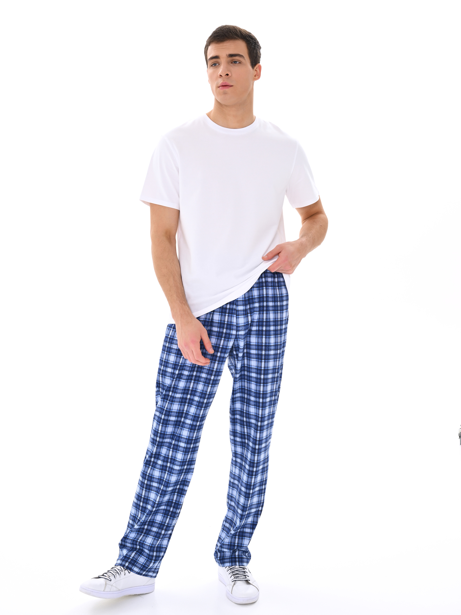 Брюки прямого кроя с втачными боковыми карманами и отрезной резинкой по талии.