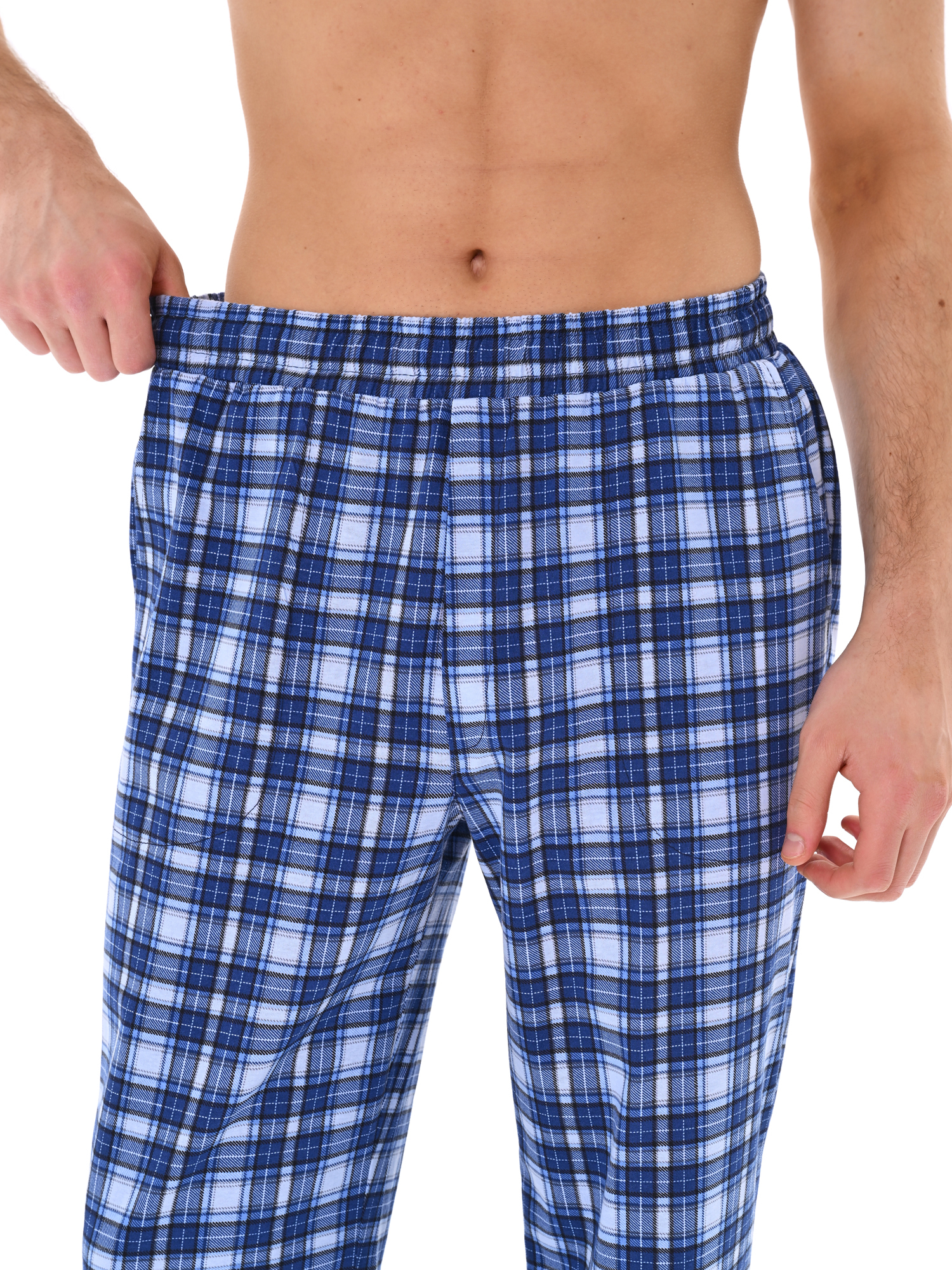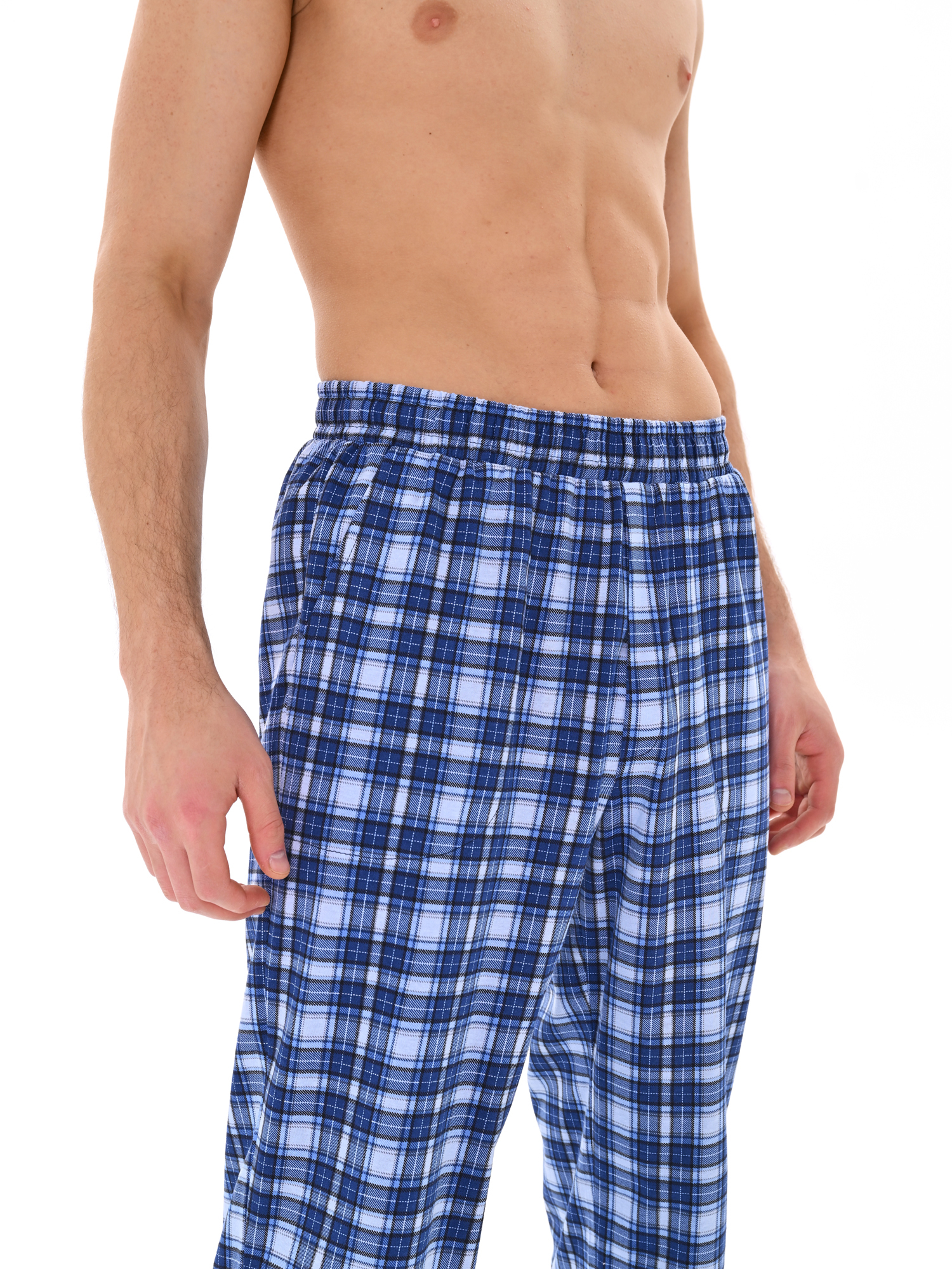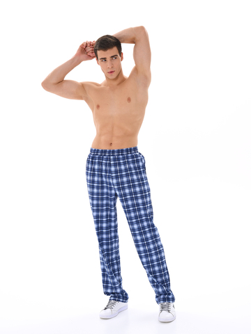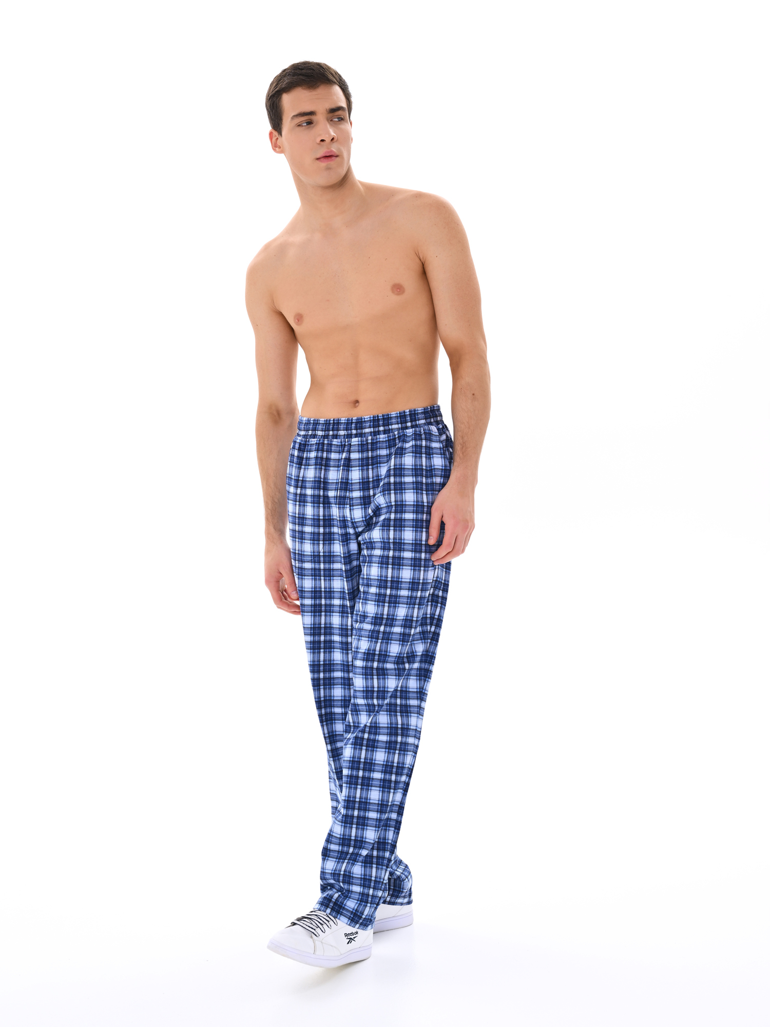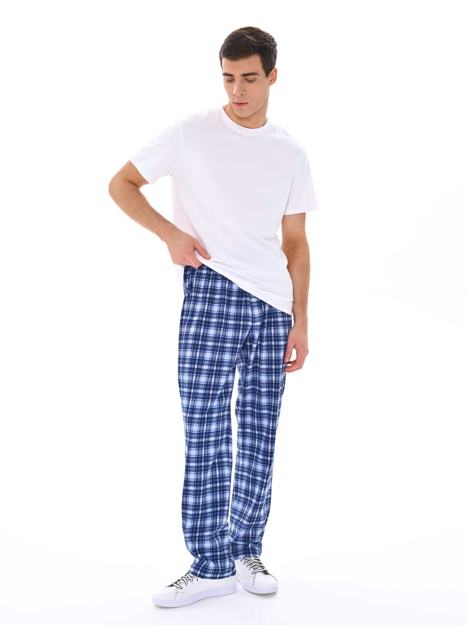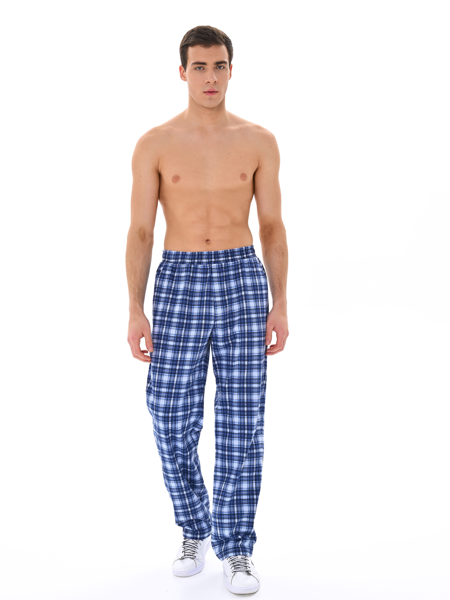 Брюки прямого кроя с втачными боковыми карманами и отрезной резинкой по талии.