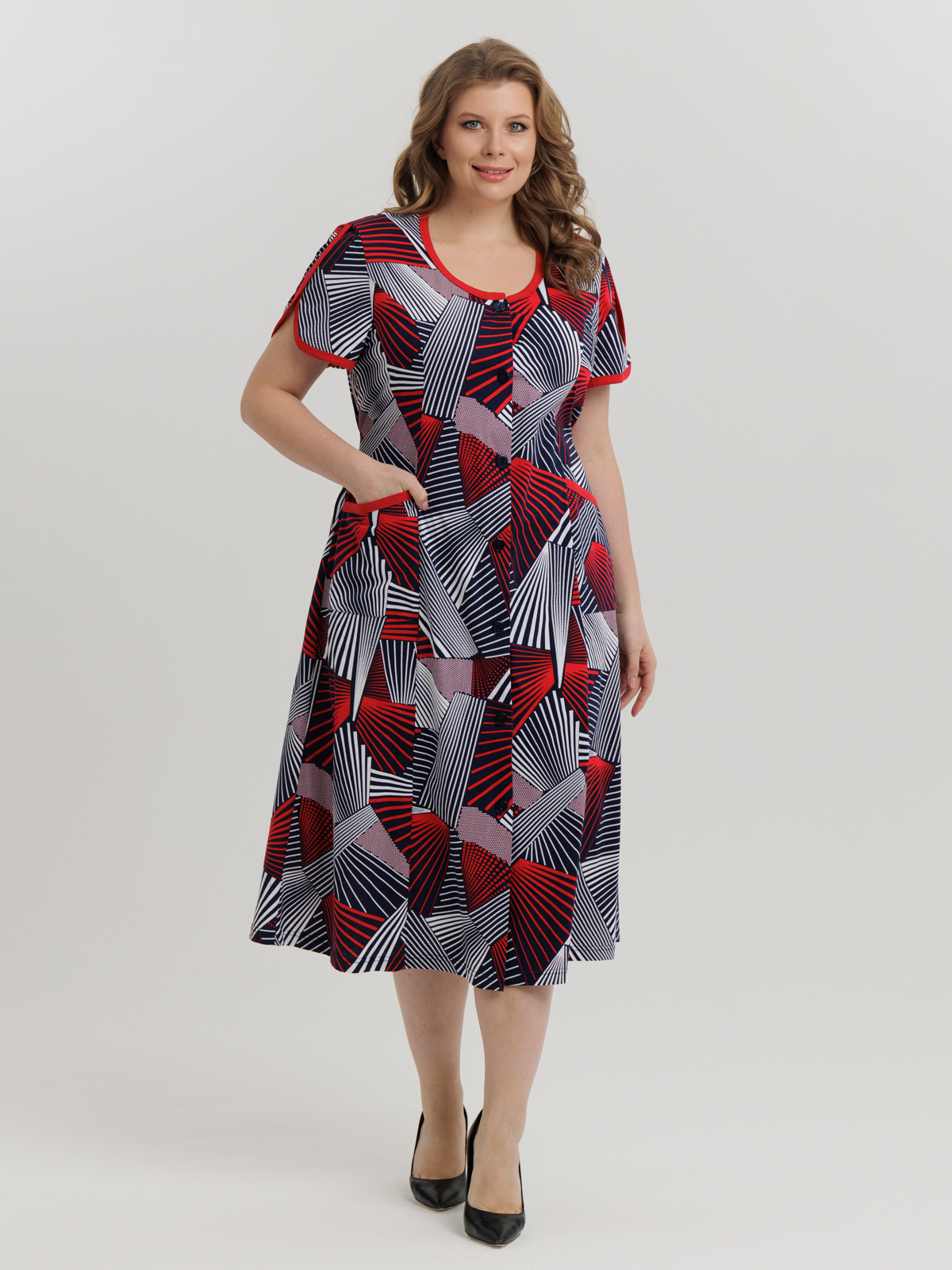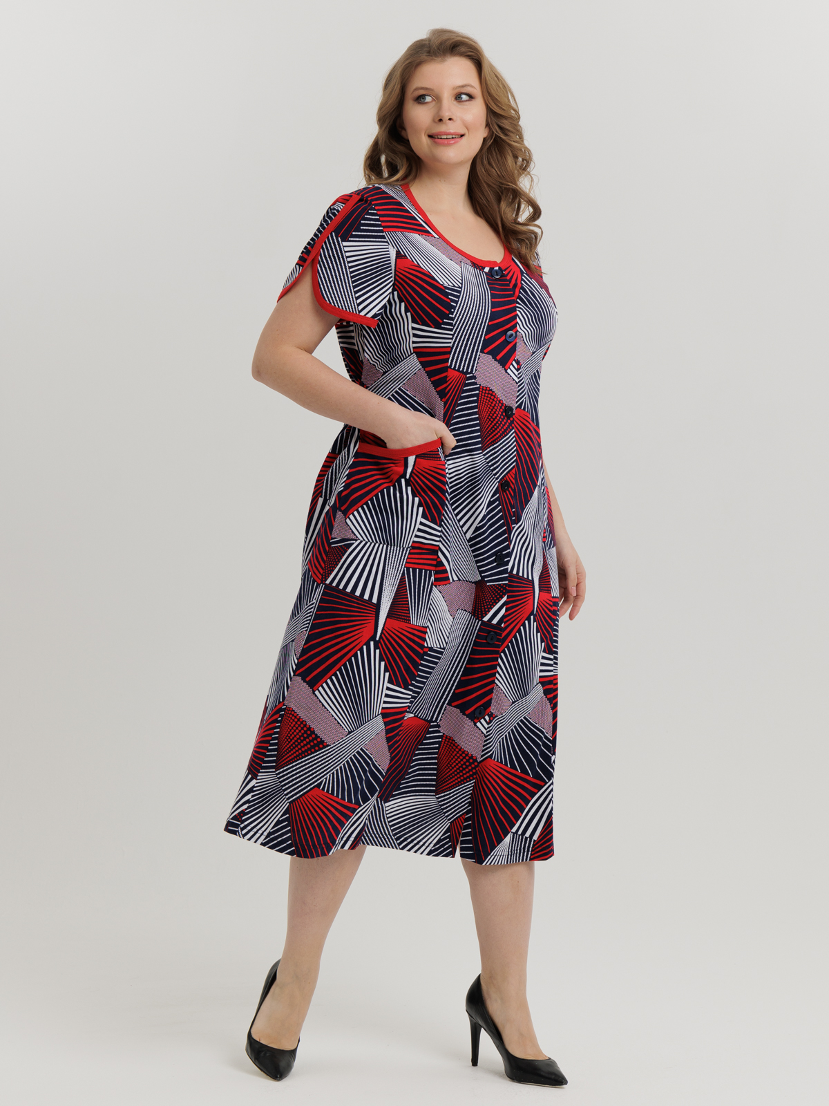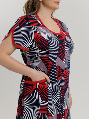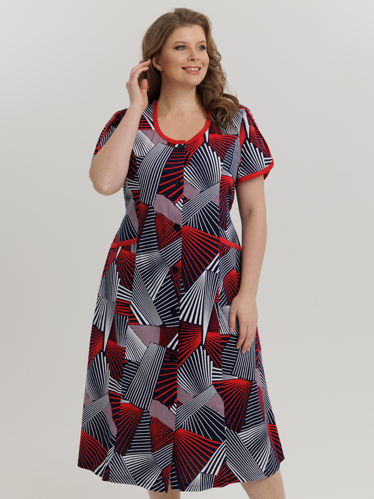 Стильный халат на пуговицах отлично подойдет как для дома, так и отдыха. Яркие цвета и декоративная отделка по горловине, рукаву и карманам придают изделию изысканный вид, а пояс в боковых швах аккуратно подчеркивает талию.