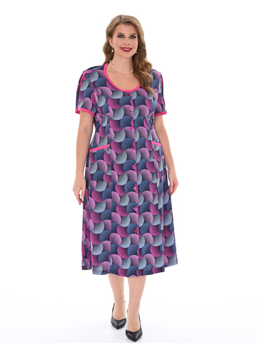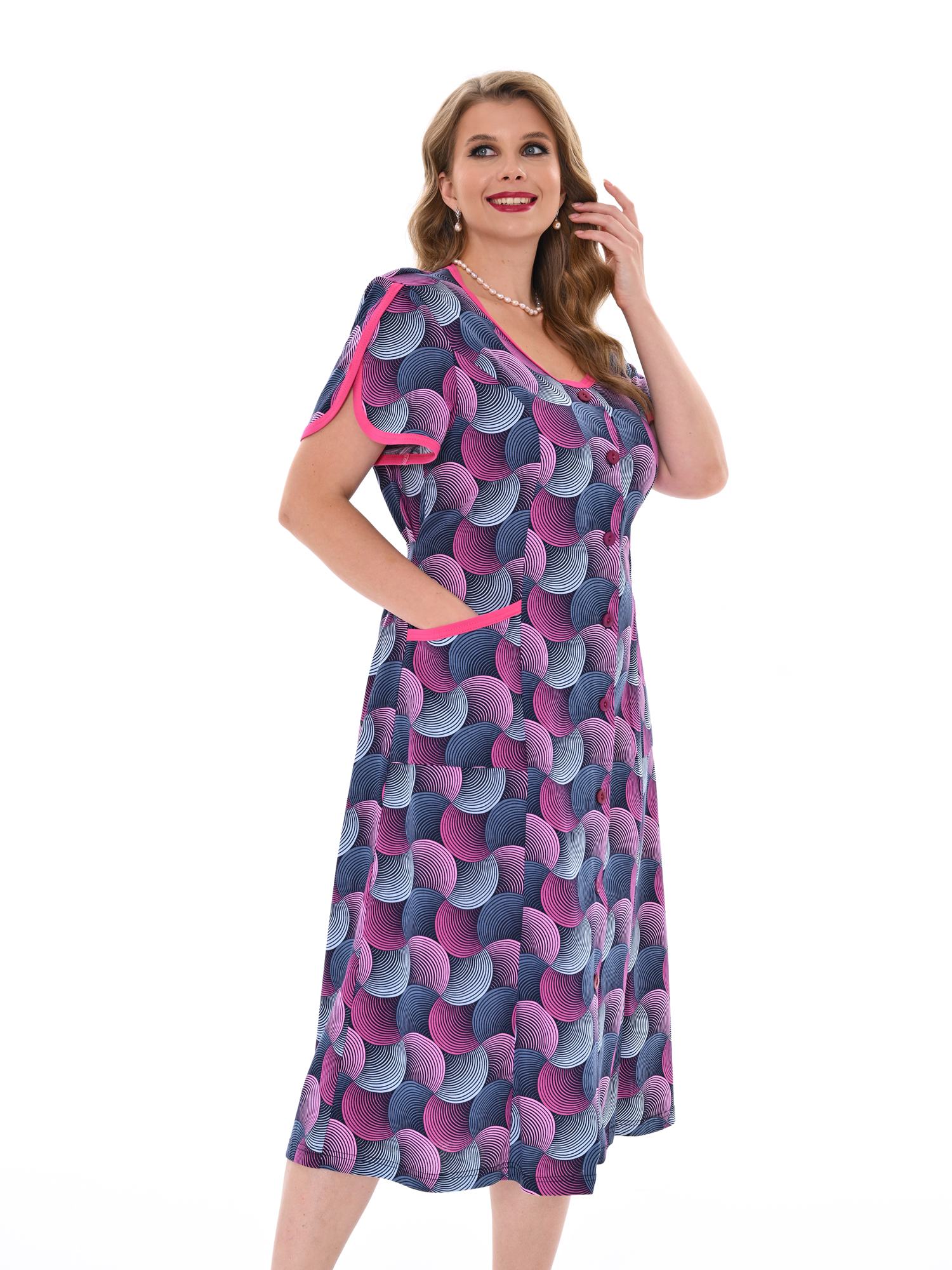 Стильный халат на пуговицах отлично подойдет как для дома, так и отдыха. Яркие цвета и декоративная отделка по горловине, рукаву и карманам придают изделию изысканный вид, а пояс в боковых швах аккуратно подчеркивает талию.