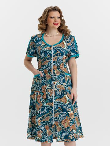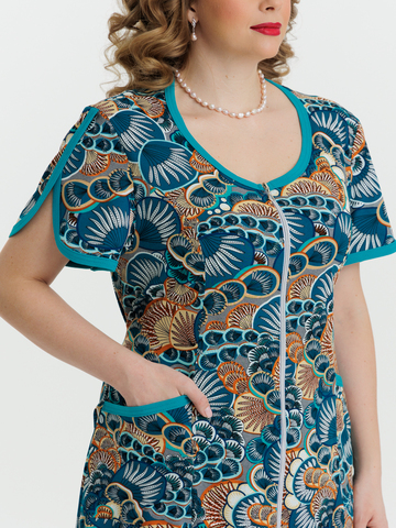 Стильный халат на молнии отлично подойдет как для дома, так и отдыха. Яркие цвета и декоративная отделка по горловине, рукаву и карманам придают изделию изысканный вид, а пояс в боковых швах аккуратно подчеркивает талию.