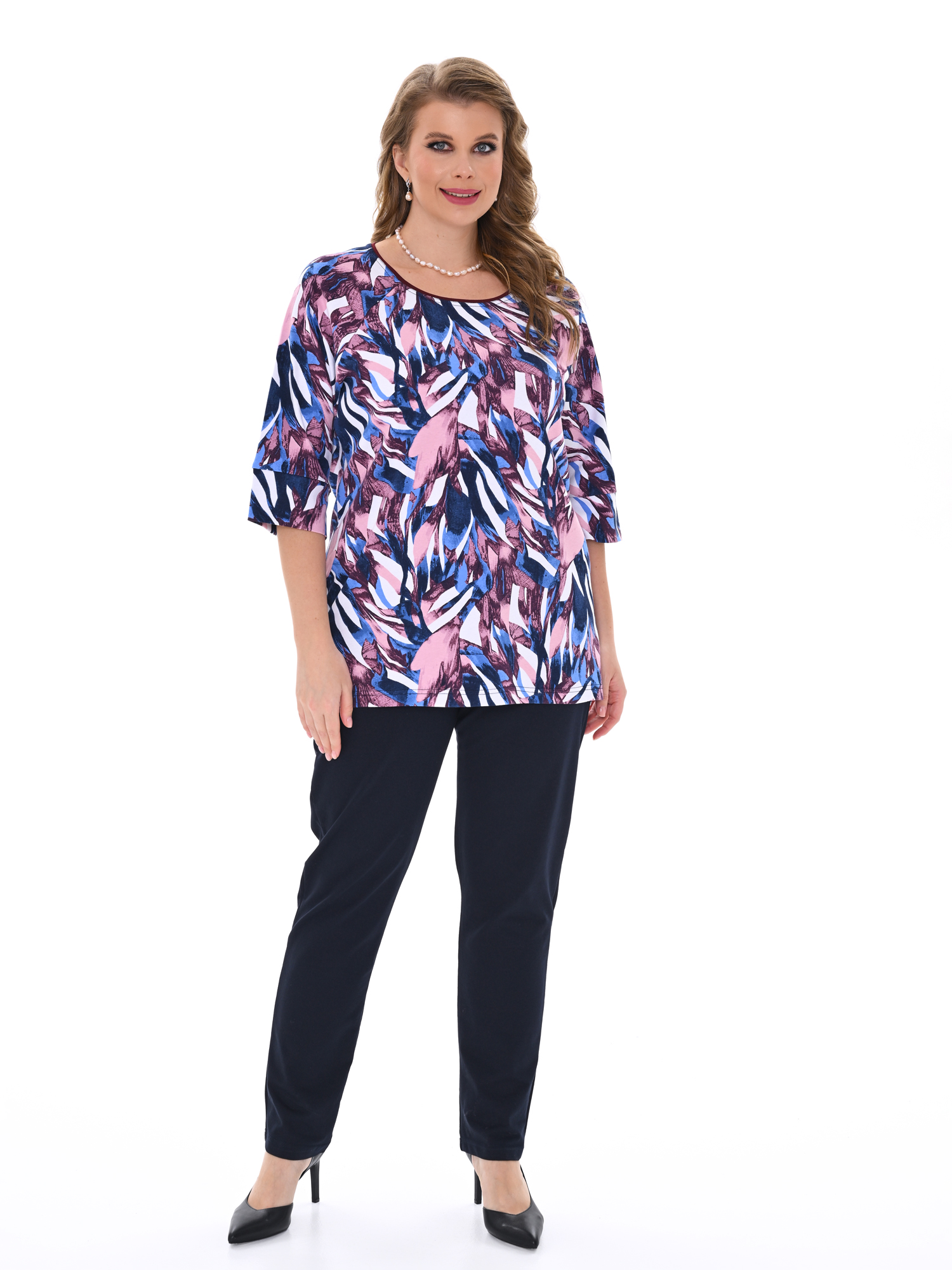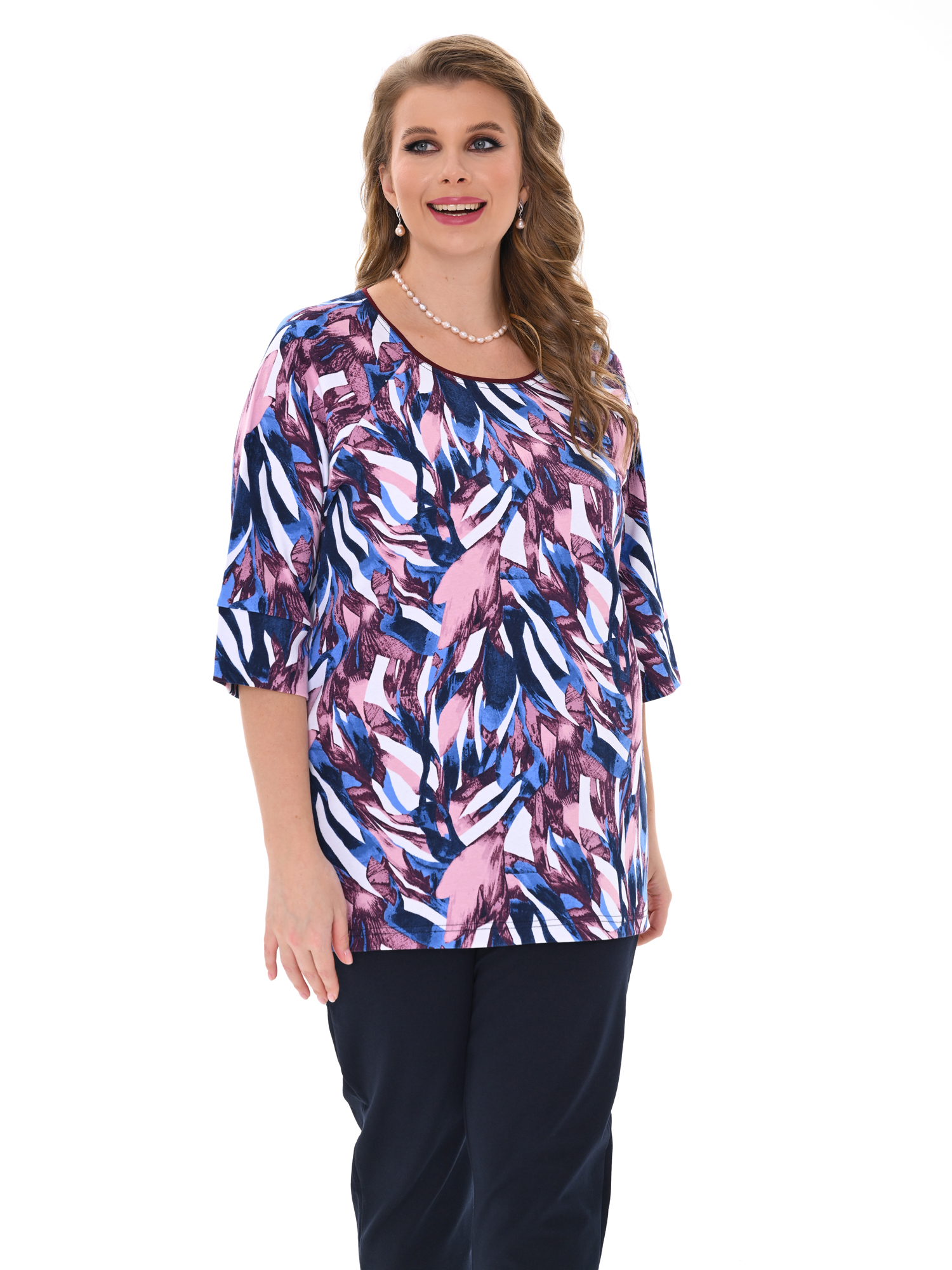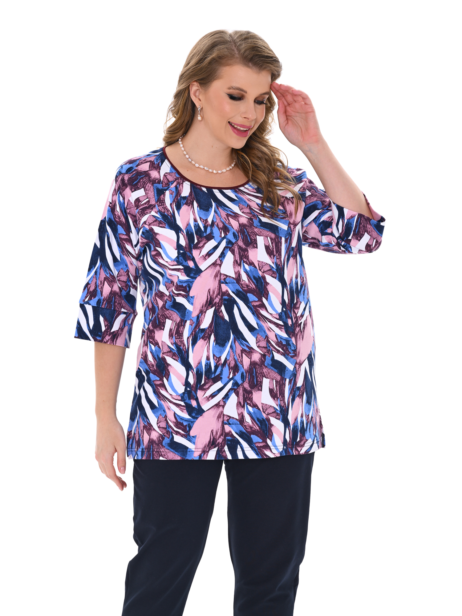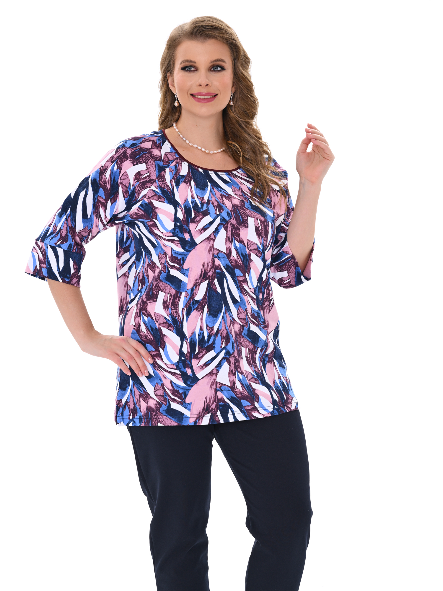 Стильная кофта для повседневной носки и отдыха выполнена из мягкого хлопкового трикотажа. Свободного покроя, с рукавом 3/4. Горловина круглой формы, подчёркнута декоративным кантом. Современный дизайн в сочетании с оригинальным цветовым решением создают изумительный образ.