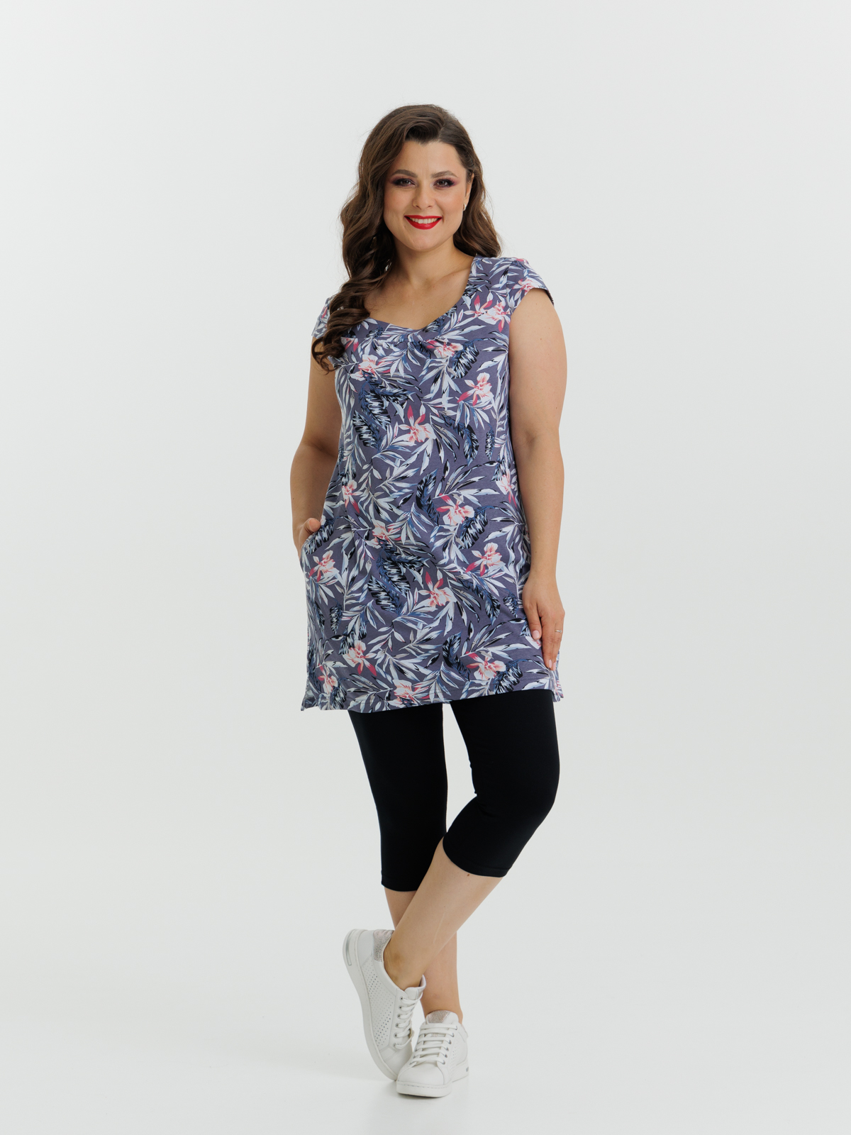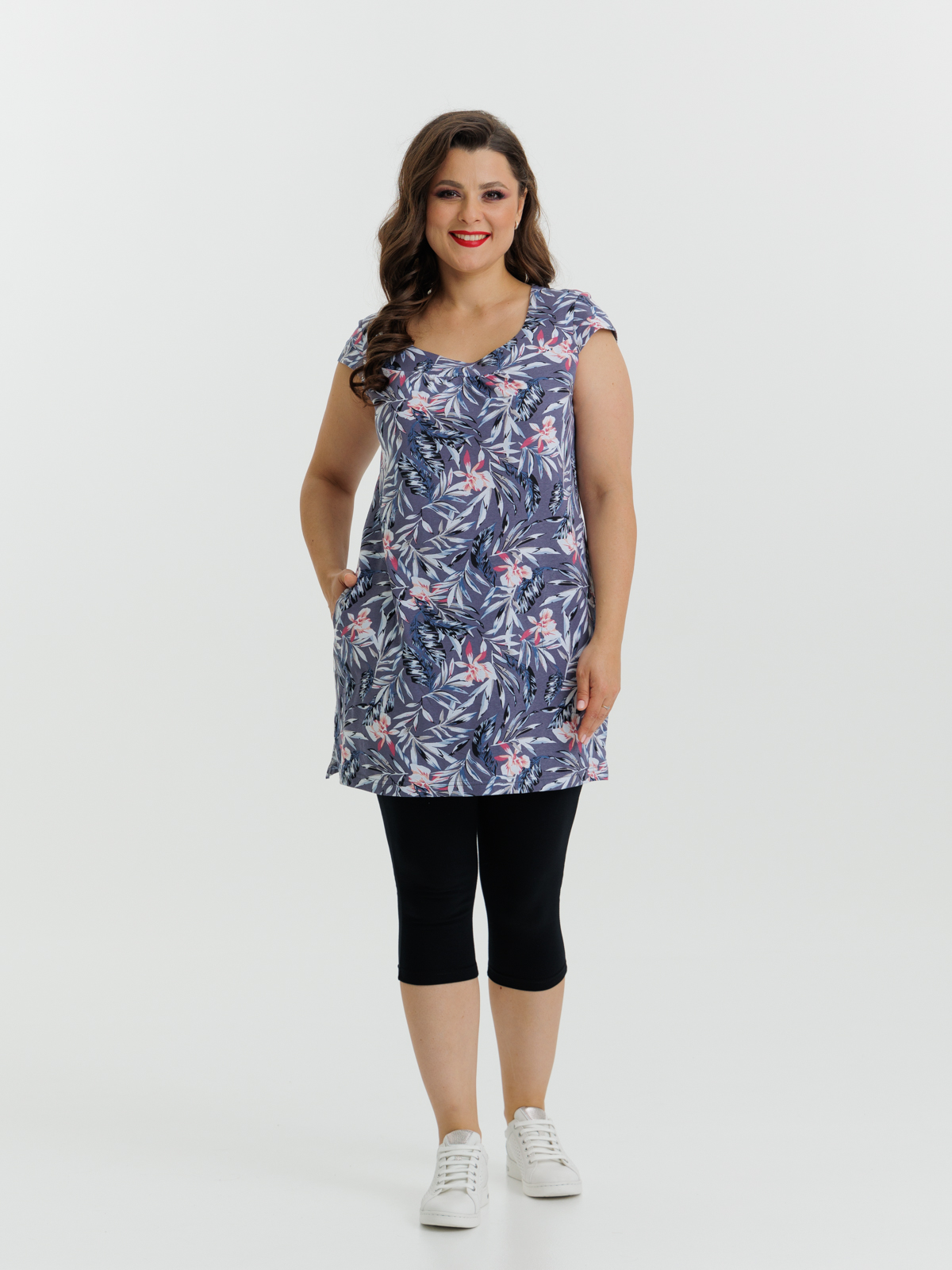 Стильная удлиненная туника прямого покроя с карманами. Отличный вариант для дома и отдыха на каждый день, прекрасная альтернатива традиционным халатам. Утонченный дизайн в сочетании с оригинальным цветовым решением создают изумительный образ.