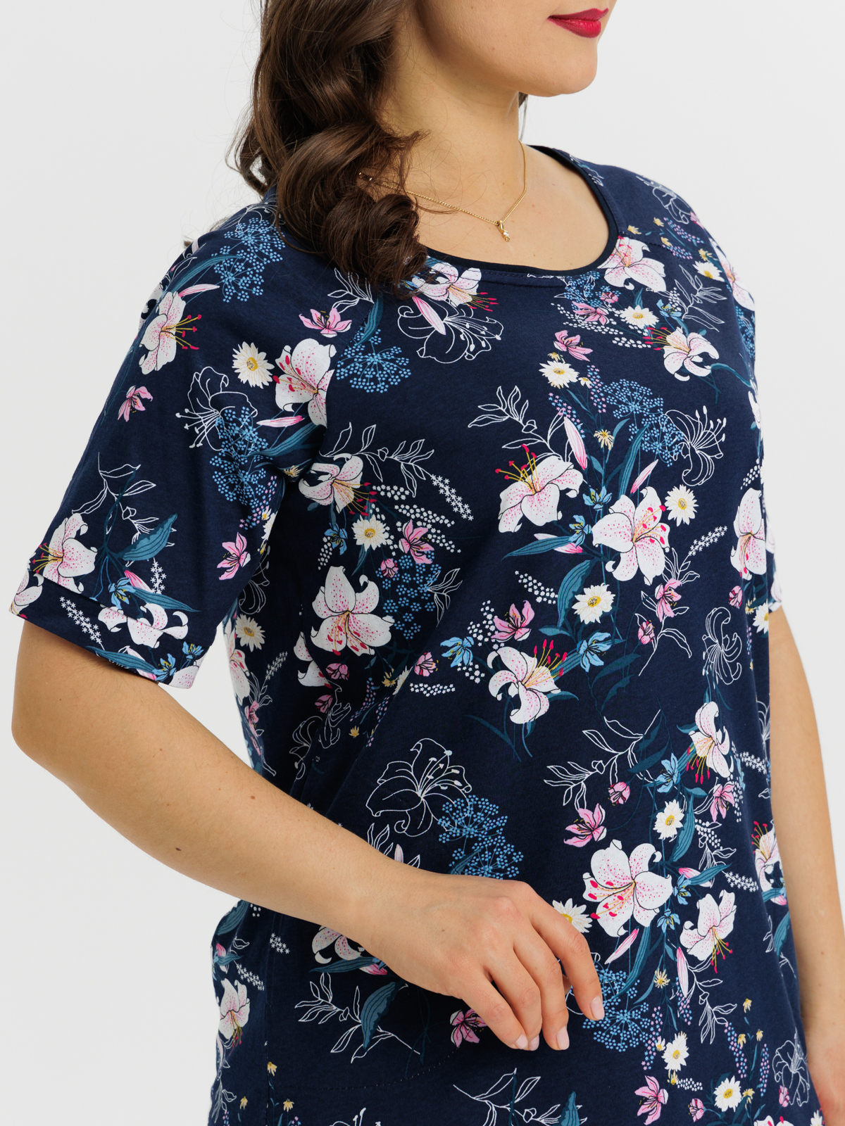 Стильная кофта для повседневной носки и отдыха выполнена из мягкого хлопкового трикотажа. Свободного покроя, короткий рукав. Горловина круглой формы, подчёркнута декоративным кантом. Современный дизайн в сочетании с оригинальным цветовым решением создают изумительный образ.