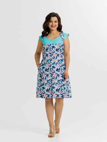 Стильный, яркий комбинированный халат на молнии отлично подойдет как для дома, так и отдыха. Яркие цвета и декоративная отделка по горловине и плечам придают изделию изысканный вид, а пояс в боковых швах аккуратно подчеркивает талию.