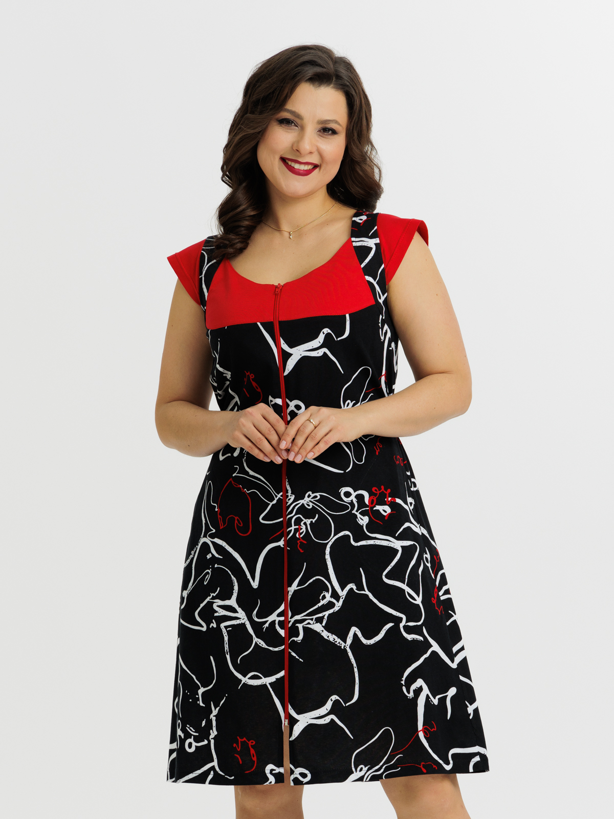 Стильный, яркий комбинированный халат на молнии отлично подойдет как для дома, так и отдыха. Яркие цвета и декоративная отделка по горловине и плечам придают изделию изысканный вид, а пояс в боковых швах аккуратно подчеркивает талию.