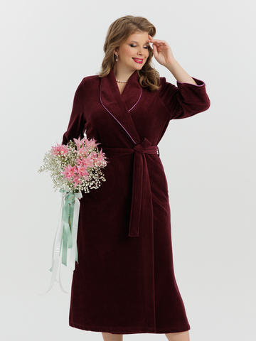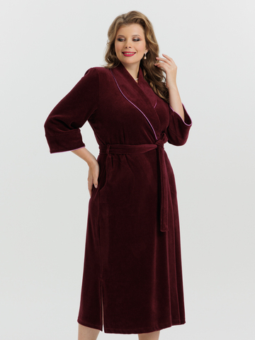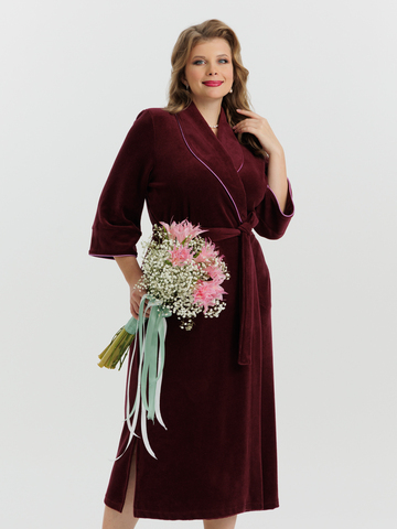 Невероятно мягкий и уютный халат из велюра качества пенье с добавлением полиэстера. Модель прямого силуэта на запахе, талию подчеркивает съемный пояс. Рукав 3/4, боковые разрезы, имеются карманы и декоративная отделка воротника и манжетов рукавов атласным кантом. Утонченный дизайн в сочетании с оригинальным цветовым решением создают изумительный образ.
