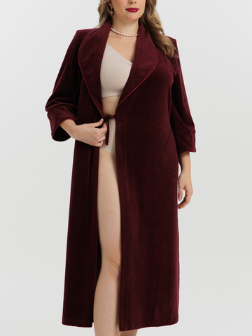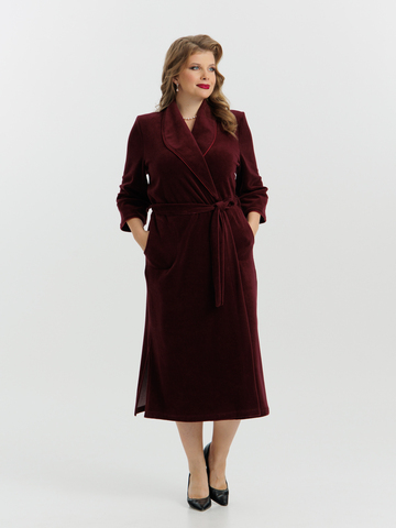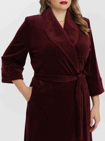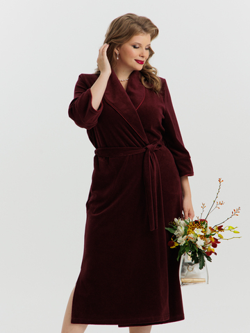 Невероятно мягкий и уютный халат из велюра качества пенье с добавлением полиэстера. Модель прямого силуэта на запахе, талию подчеркивает съемный пояс. Рукав 3/4, боковые разрезы, имеются карманы и декоративная отделка воротника и манжетов рукавов атласным кантом. Утонченный дизайн в сочетании с оригинальным цветовым решением создают изумительный образ.