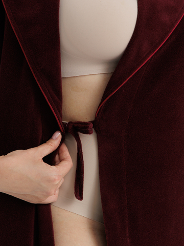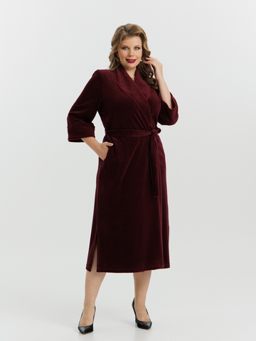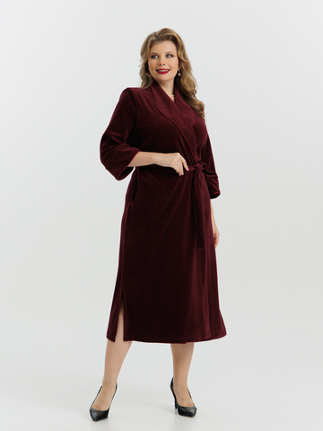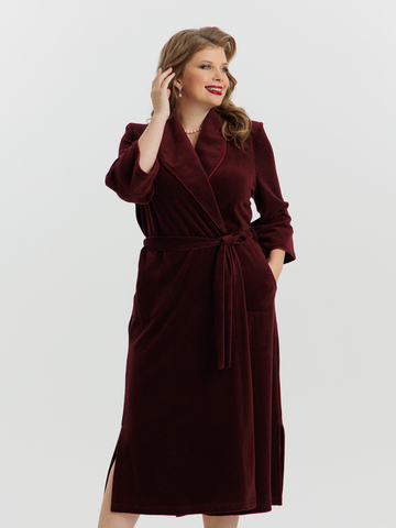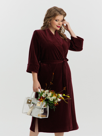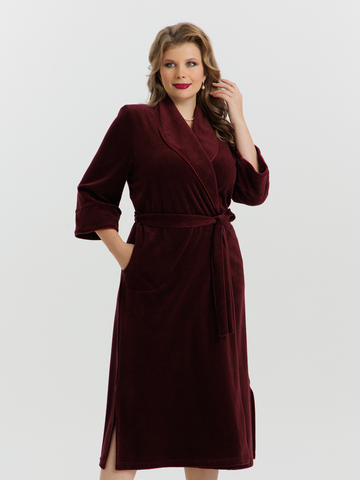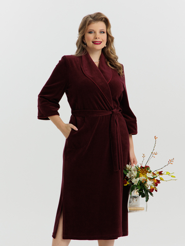 Невероятно мягкий и уютный халат из велюра качества с добавлением полиэстера. Модель прямого силуэта на запахе, талию подчеркивает съемный пояс. Рукав 3/4, боковые разрезы, имеются карманы и декоративная отделка воротника и манжетов рукавов атласным кантом. Утонченный дизайн в сочетании с оригинальным цветовым решением создают изумительный образ.