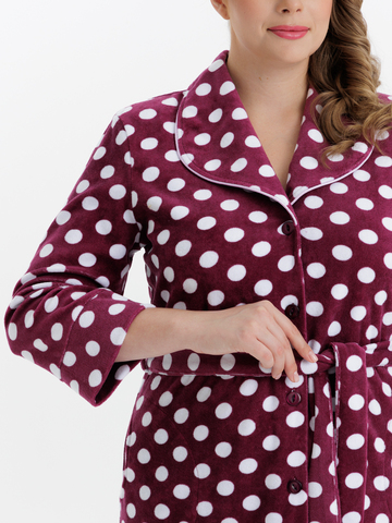 Невероятно мягкий и уютный халат из велюра качества пенье с добавлением полиэстера. Модель на пуговицах, талию подчеркивает съемный пояс. Рукав 3/4, боковые разрезы, имеются карманы и декоративная отделка воротника и манжетов рукавов атласным кантом. Утонченный дизайн в сочетании с оригинальным цветовым решением создают изумительный образ.