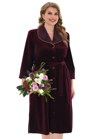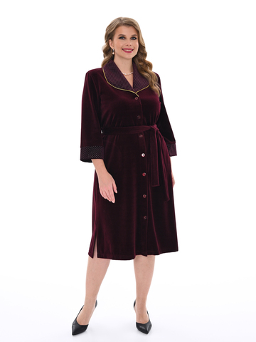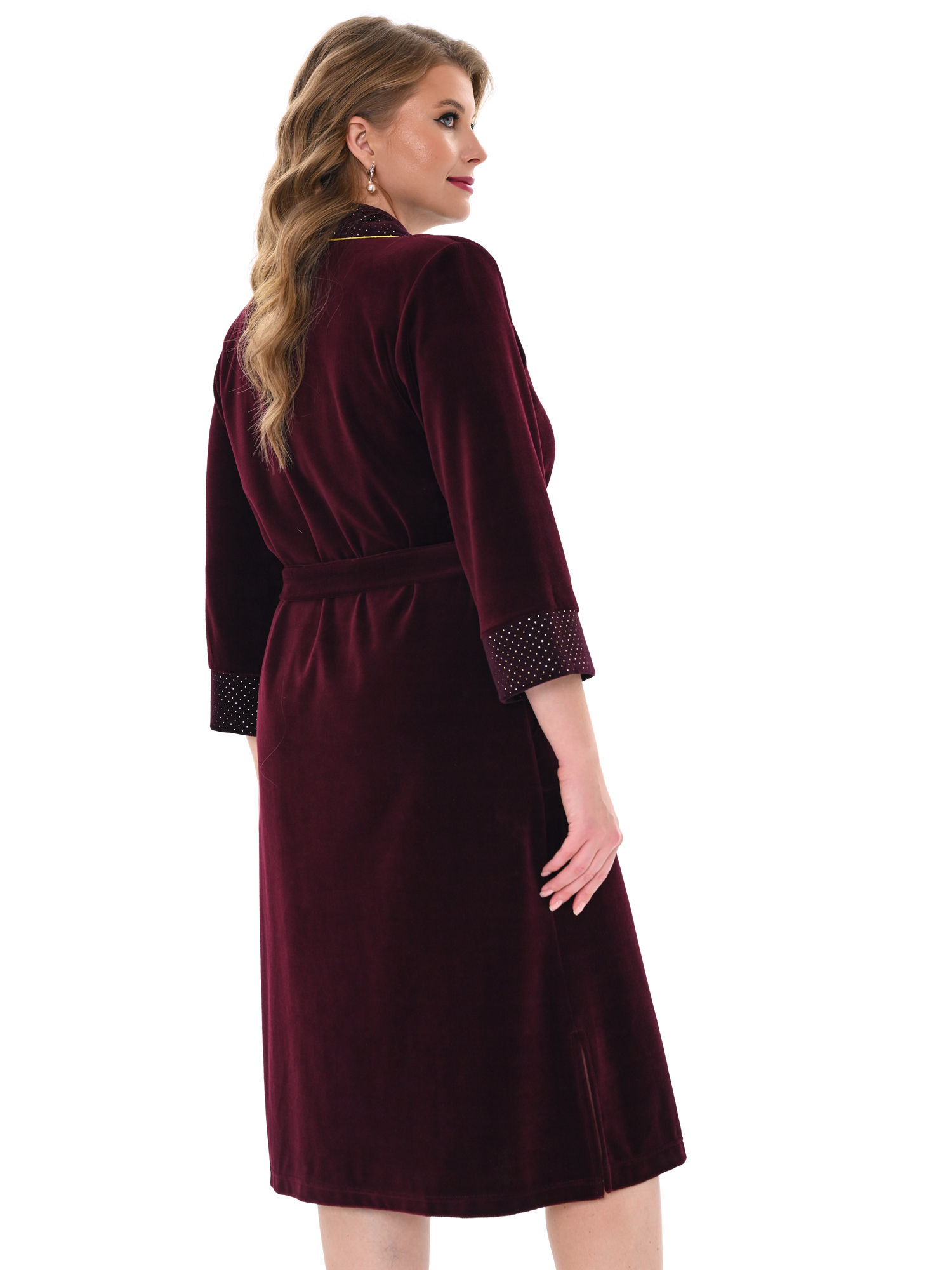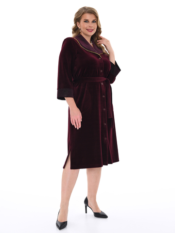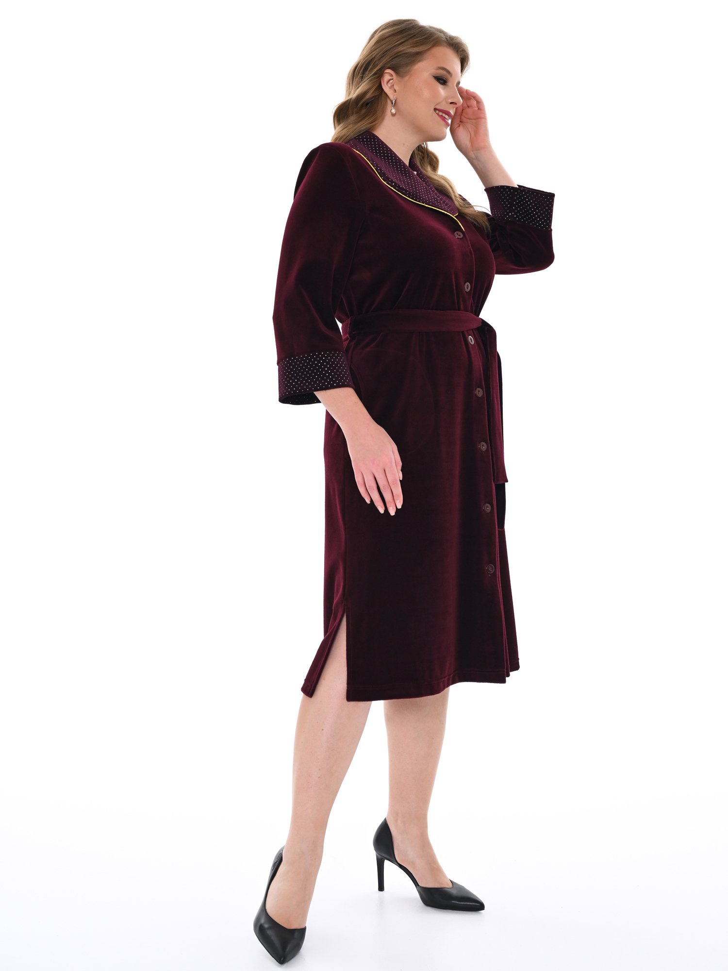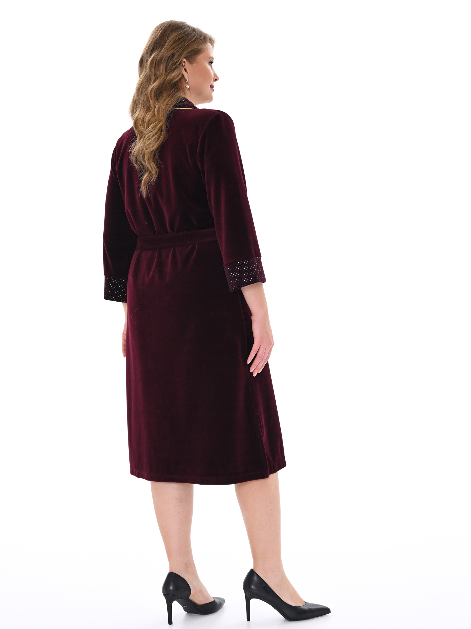 Невероятно мягкий и уютный халат из велюра качества пенье с добавлением полиэстера. Модель на пуговицах, талию подчеркивает съемный пояс. Рукав 3/4, боковые разрезы, имеются карманы и декоративная отделка воротника и манжетов рукавов атласным кантом. Утонченный дизайн в сочетании с оригинальным цветовым решением создают изумительный образ.
