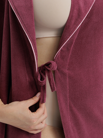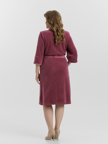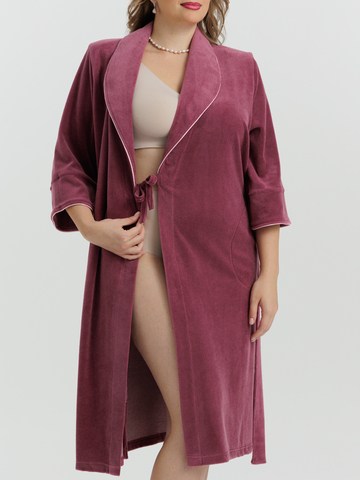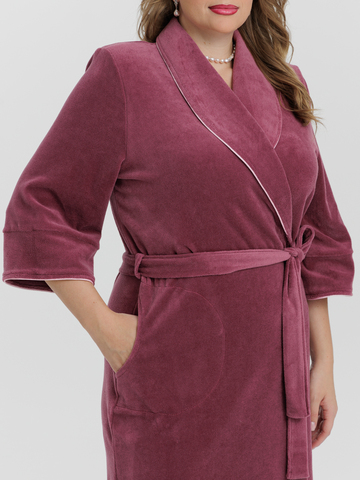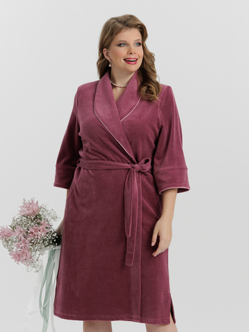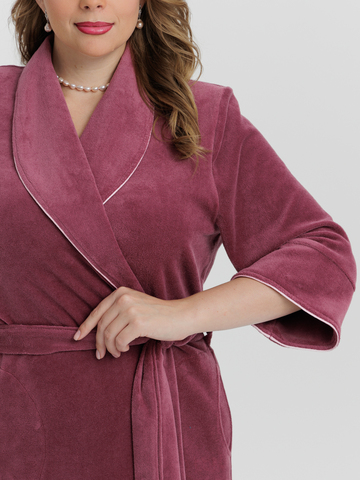 Невероятно мягкий и уютный халат из велюра с добавлением полиэстера. Модель прямого силуэта на запахе, талию подчеркивает съемный пояс. Рукав 3/4, имеются карманы и декоративная отделка воротника и манжетов рукавов атласным кантом. Утонченный дизайн в сочетании с оригинальным цветовым решением создают изумительный образ.