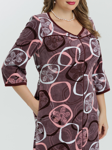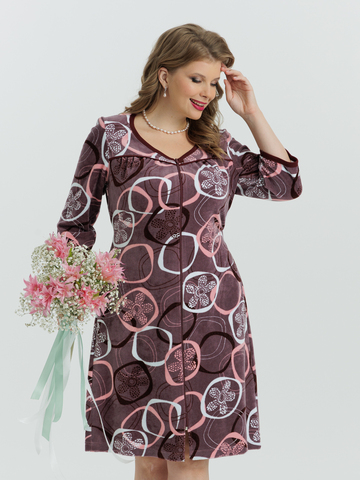 Стильный и яркий халат прямого силуэта на молнии. Модель с V-образным вырезом, карманами, с рукавом 3/4 отдекоррирована однотонной бейкой. А пояс в боковых швах изящно подчеркивает талию. Идеально подходит как для дома, отдыха, так и на каждый день.