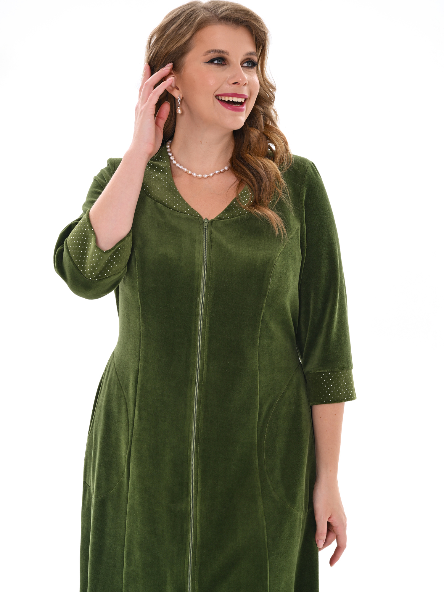 Невероятно мягкий, элегантный и уютный халат из велюра качества пенье с добавлением полиэстера, который практически не мнется и легко стирается. Модель прямого силуэта на молнии, с карманами и декоративной отделкой по горловине и манжетов рукавов. Утонченный дизайн в сочетании с оригинальным цветовым решением создают изумительный образ,