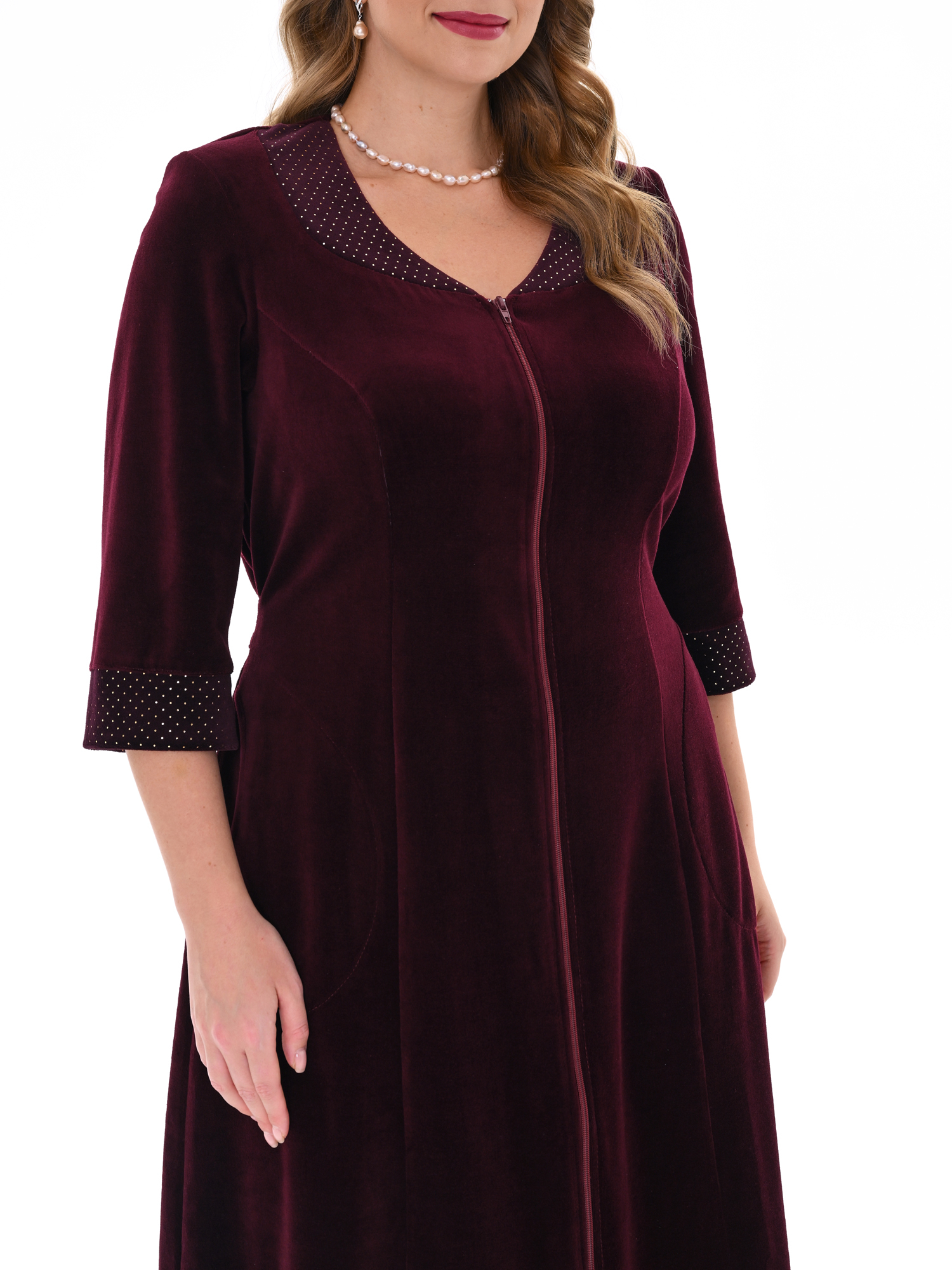 Невероятно мягкий, элегантный и уютный халат из велюра качества пенье с добавлением полиэстера, который практически не мнется и легко стирается. Модель прямого силуэта на молнии, с карманами и декоративной отделкой по горловине и манжетов рукавов. Утонченный дизайн в сочетании с оригинальным цветовым решением создают изумительный образ,