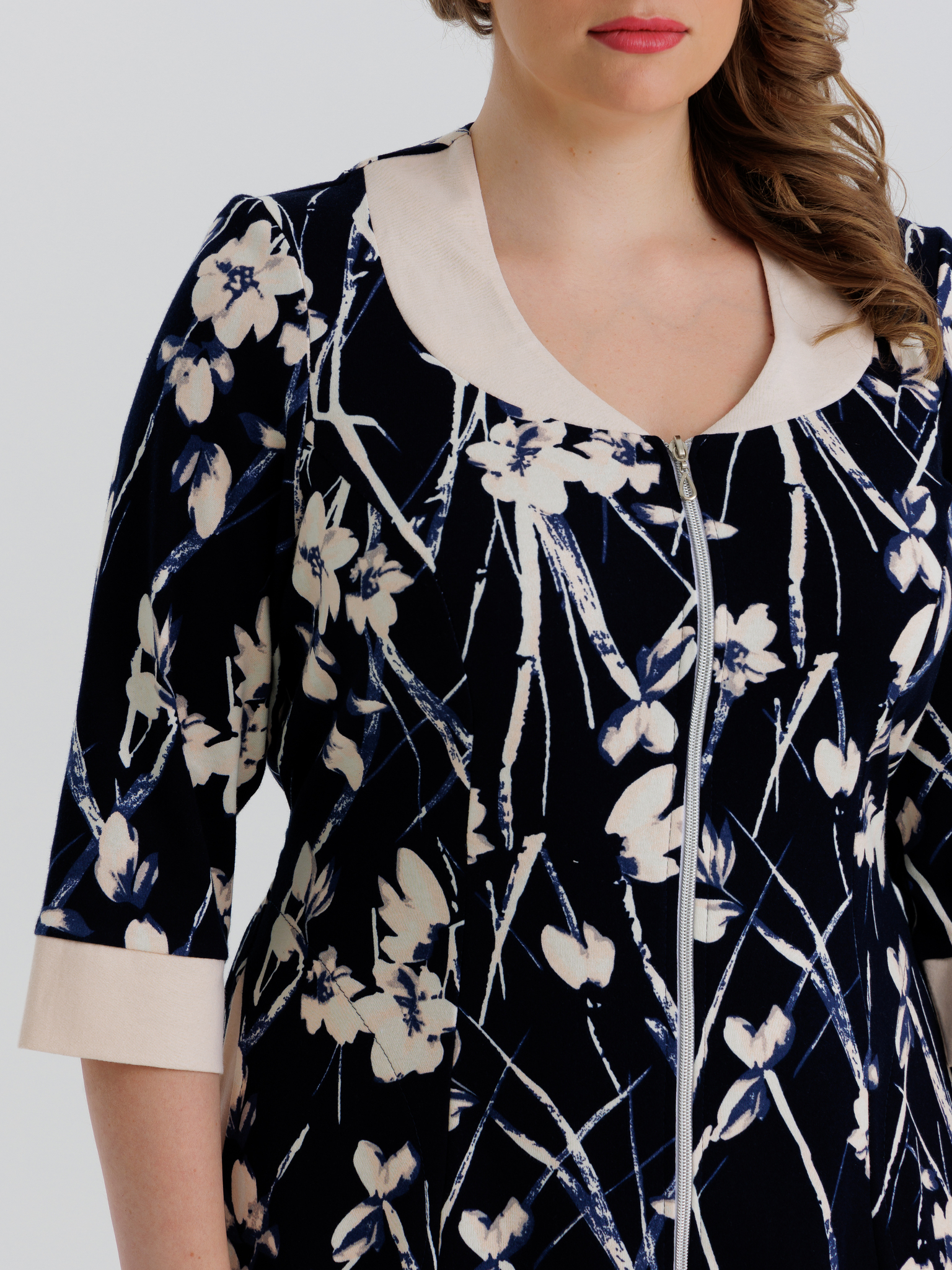 Стильный и элегантный халат на молнии. Модель прямого силуэта, с карманами и декоративной отделкой по горловине и манжетов рукавов. Утонченный дизайн в сочетании с оригинальным цветовым решением создают изумительный образ.