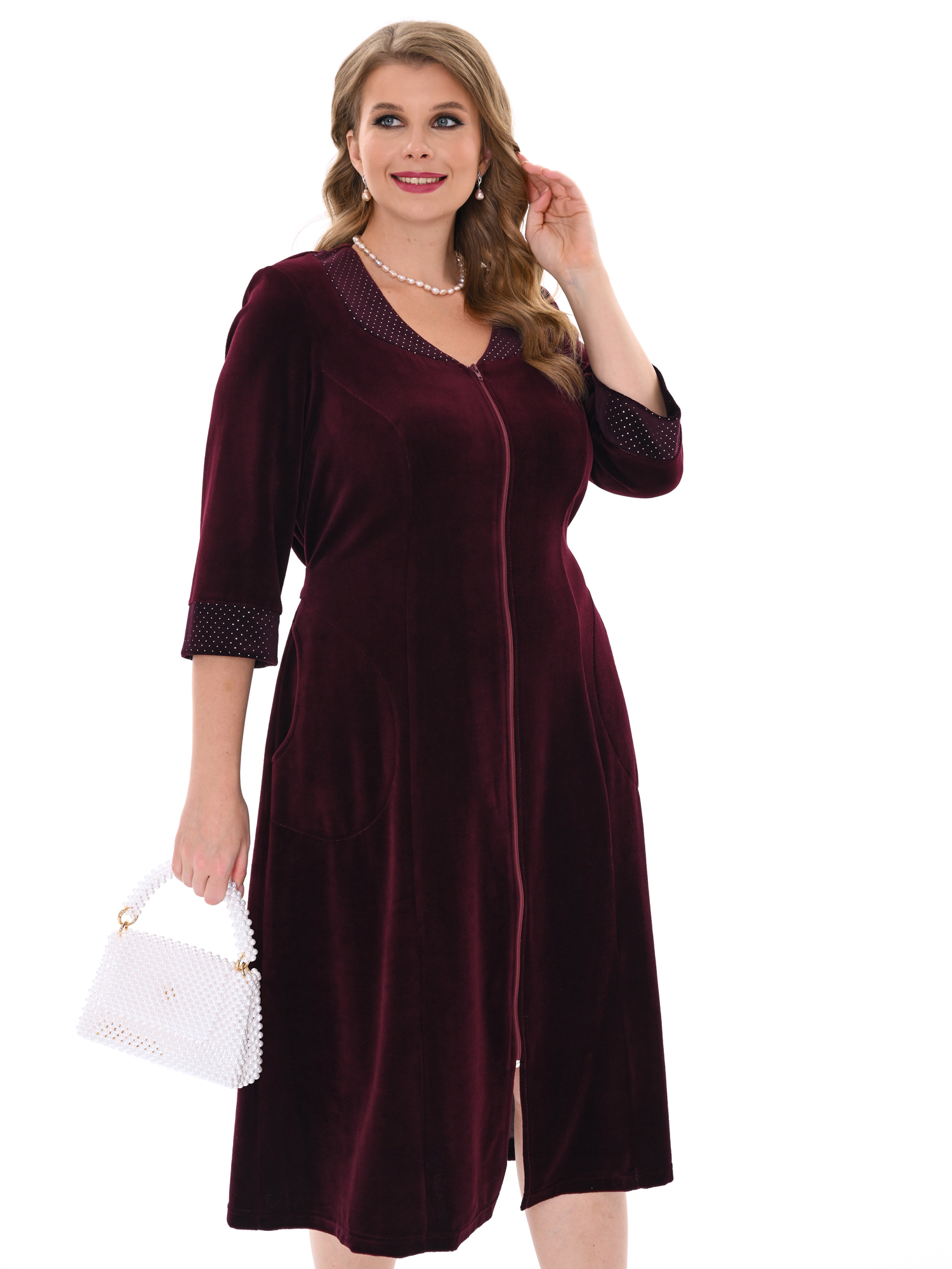 Невероятно мягкий, элегантный и уютный халат из велюра качества пенье с добавлением полиэстера, который практически не мнется и легко стирается. Модель прямого силуэта на молнии, с карманами и декоративной отделкой по горловине и манжетов рукавов. Утонченный дизайн в сочетании с оригинальным цветовым решением создают изумительный образ,