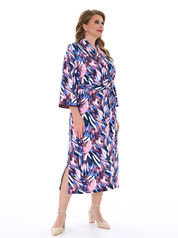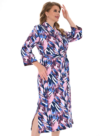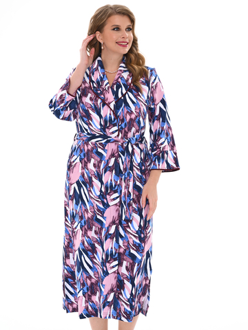 Стильный и уютный халат с карманами, боковыми разрезами и рукавом 3/4. Модель прямого силуэта на запахе, талию подчеркивает съемный пояс. Воротник и манжеты рукавов отдекорированы контрастным кантом. Утонченный дизайн в сочетании с оригинальным цветовым решением создают изумительный образ.