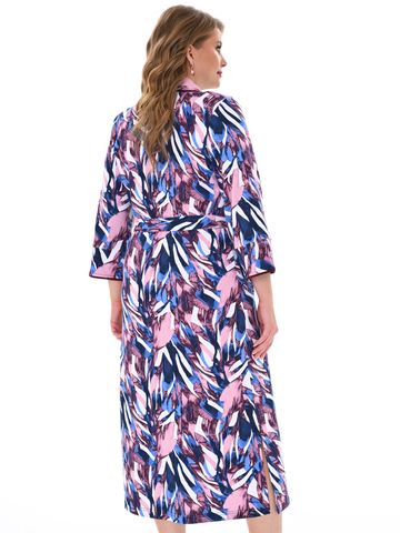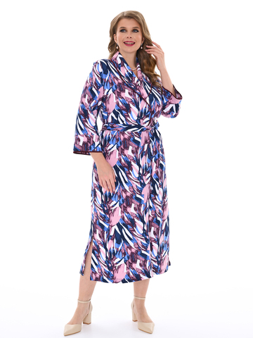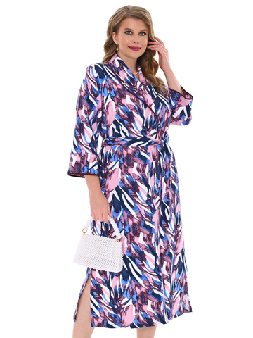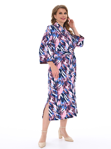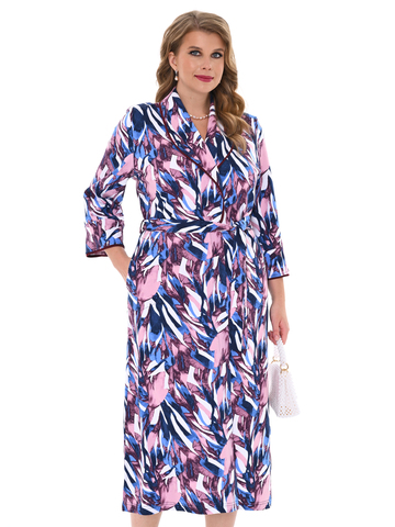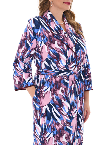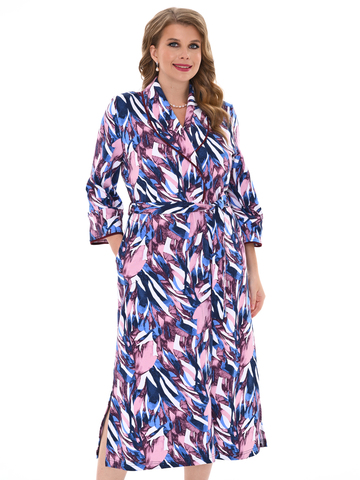 Стильный и уютный халат с карманами, боковыми разрезами и рукавом 3/4. Модель прямого силуэта на запахе, талию подчеркивает съемный пояс. Воротник и манжеты рукавов отдекорированы контрастным кантом. Утонченный дизайн в сочетании с оригинальным цветовым решением создают изумительный образ.