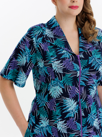 Классический халат из хлопка на молнии, с воротником апаш и карманами. Модель слегка приталенного силуэта, а пояс в боковых швах элегантно подчеркивает талию. Идеально подходит как для дома, отдыха, так и на каждый день.