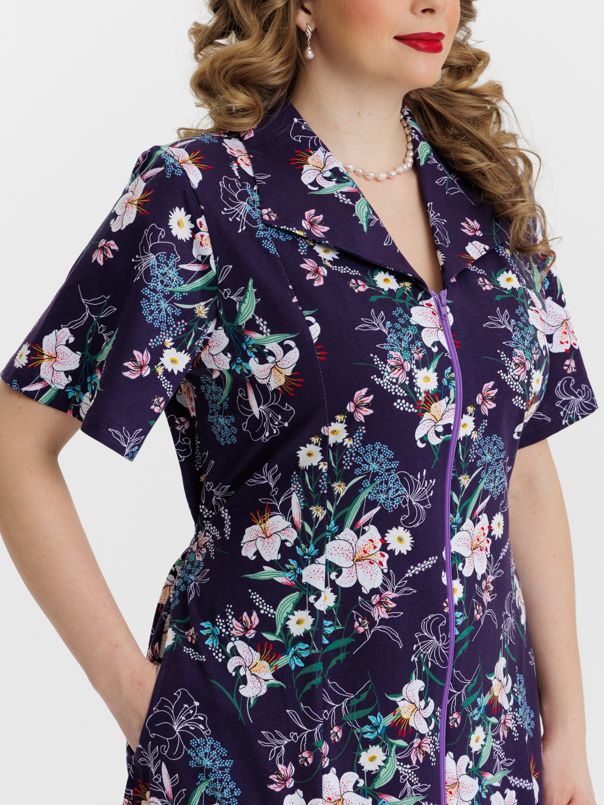 Классический халат из хлопка на молнии, с воротником апаш и карманами. Модель слегка приталенного силуэта, а пояс в боковых швах элегантно подчеркивает талию. Идеально подходит как для дома, отдыха, так и на каждый день.