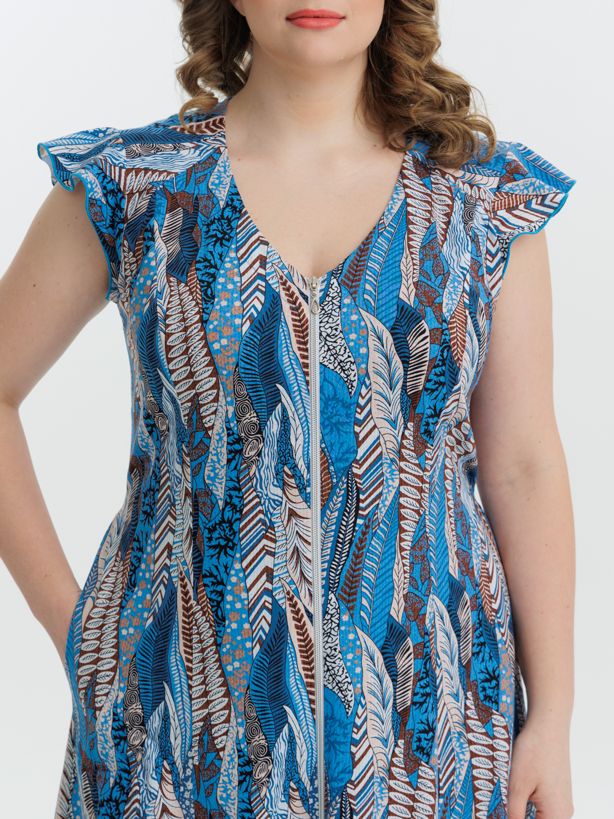 Невероятно уютный халат из хлопка на молнии, с V-образным вырезом, двумя карманами и рукавом крыло. А яркие цвета и пояс в боковых швах придают изделию изысканный вид. Отлично подойдет для дома и отдыха.