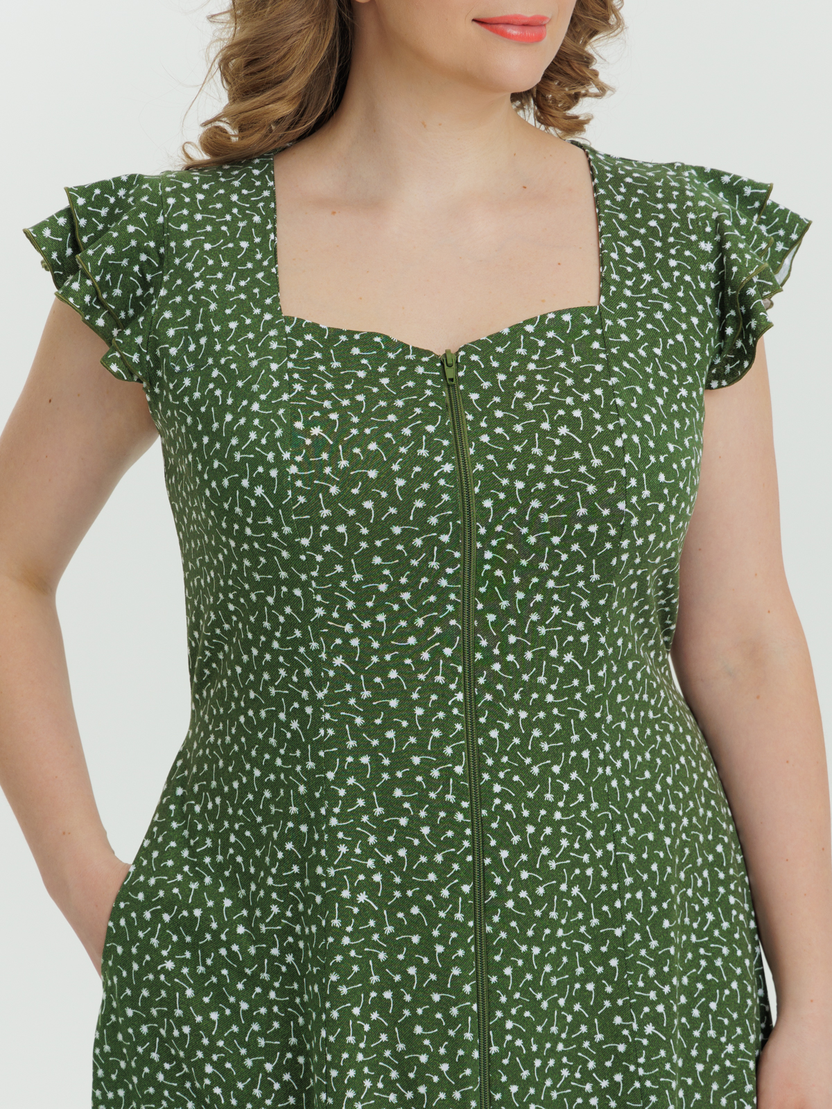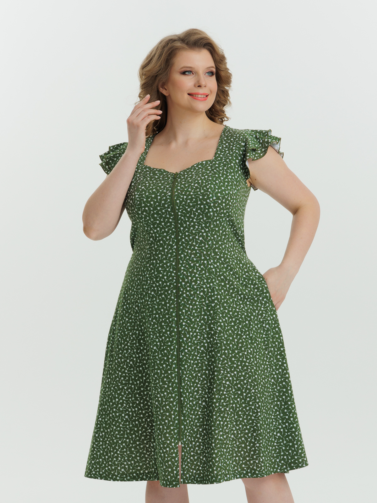 Стильный и комфортный халат. Модель на молнии с боковыми карманами и коротким рукавом, имеется декоративная отделка в виде двойного крыла на рукавах, а пояс в боковых швах аккуратно подчеркивает талию. Утонченный и современный дизайн с изящным приталенным силуэтом создает изумительный и молодежный образ.