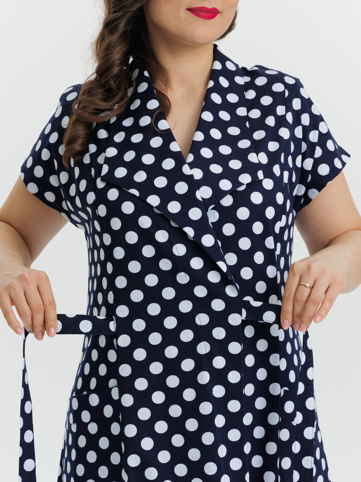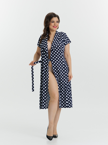 Стильный халат на запахе из хлопка. Модель приталенного силуэта с воротником апаш, с спущенными рукавами и карманами. А пояс элегантно подчеркивает талию. Идеально подходит как для дома, отдыха, так и на каждый день.