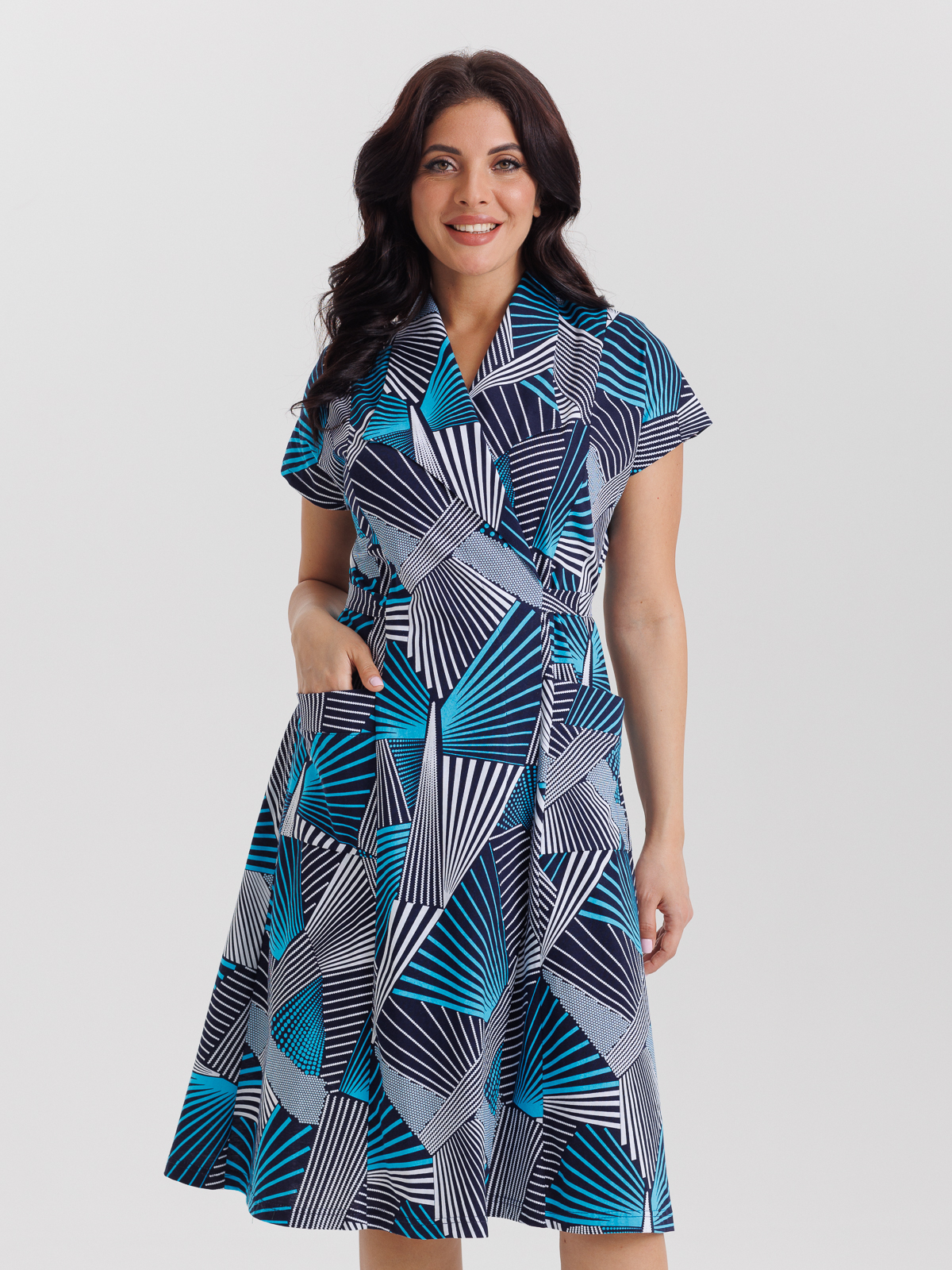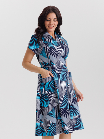 Стильный халат на запахе из хлопка. Модель приталенного силуэта с воротником апаш, с спущенными рукавами и карманами. А пояс элегантно подчеркивает талию. Идеально подходит как для дома, отдыха, так и на каждый день.