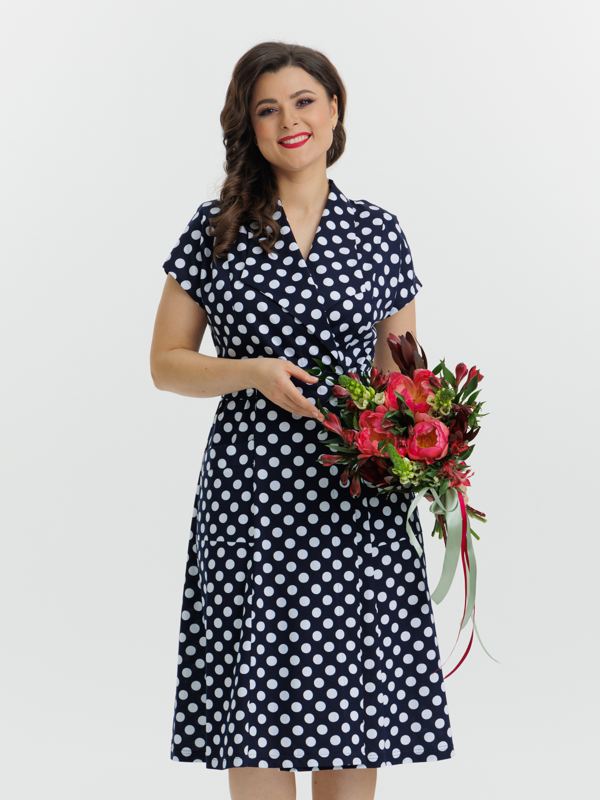 Стильный халат на запахе из хлопка. Модель приталенного силуэта с воротником апаш, с спущенными рукавами и карманами. А пояс элегантно подчеркивает талию. Идеально подходит как для дома, отдыха, так и на каждый день.