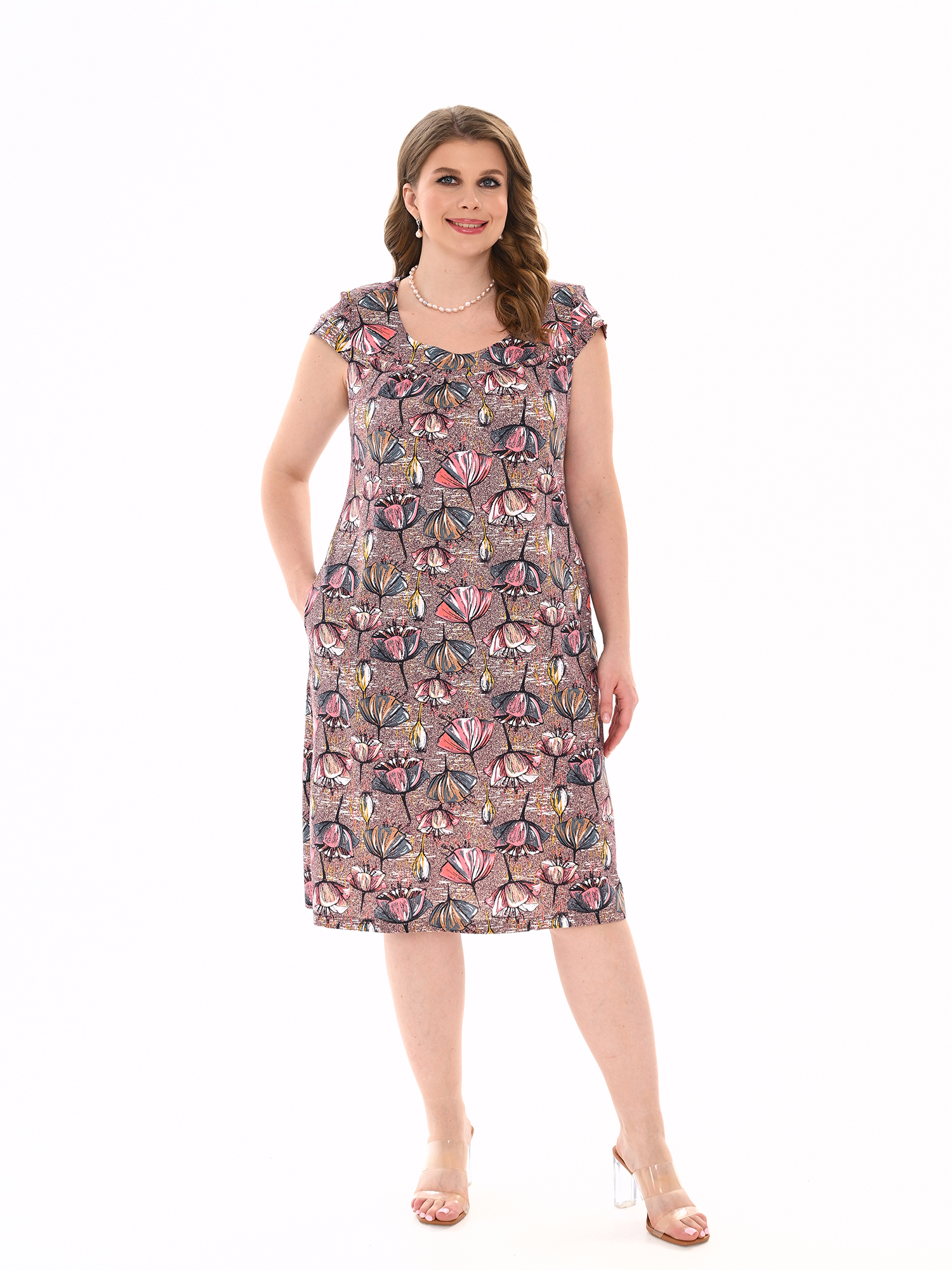 Стильное платье-туника, с карманами, боковыми разрезами и отрезной кокеткой, отлично подойдет как для дома, так и отдыха. Яркое цветовое решение придают изделию изысканный и неотразимый вид.