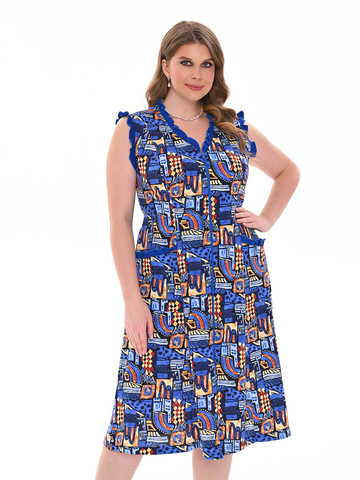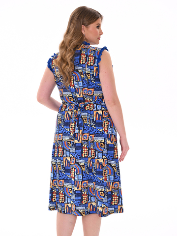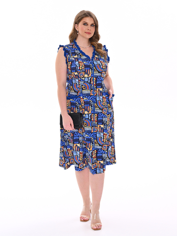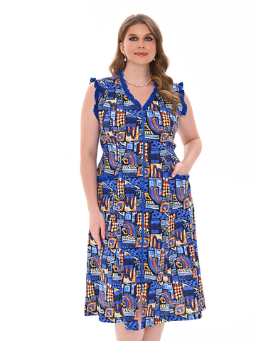 Стильный сарафан на молнии отлично подойдет как для дома, так и отдыха. Яркие цвета и декоративная отделка по V-образной горловине, пройме и карманам придают изделию изысканный вид, а пояс в боковых швах аккуратно подчеркивает талию.