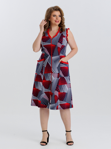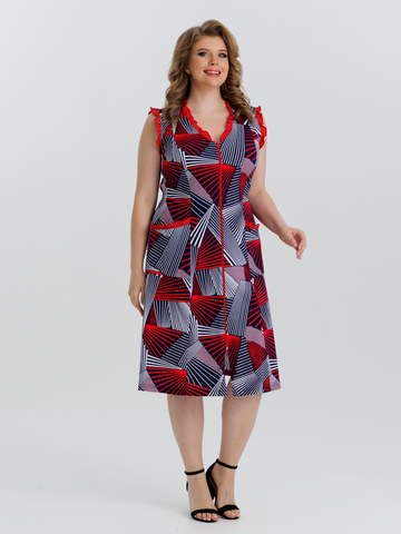 Стильный сарафан на молнии отлично подойдет как для дома, так и отдыха. Яркие цвета и декоративная отделка по V-образной горловине, пройме и карманам придают изделию изысканный вид, а пояс в боковых швах аккуратно подчеркивает талию.