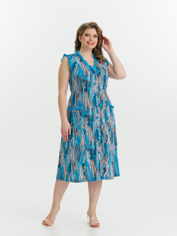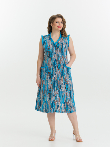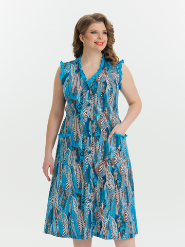 Стильный сарафан на пуговицах отлично подойдет как для дома, так и отдыха. Яркие цвета и декоративная отделка по V-образной горловине, пройме и карманам придают изделию изысканный вид, а пояс в боковых швах аккуратно подчеркивает талию.