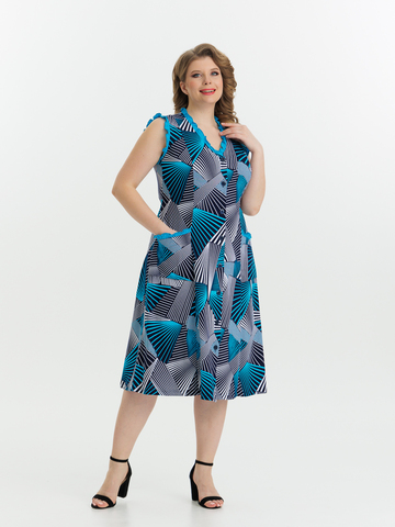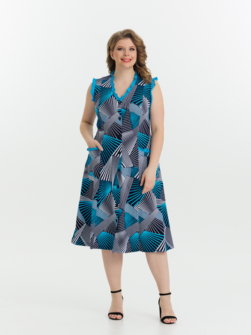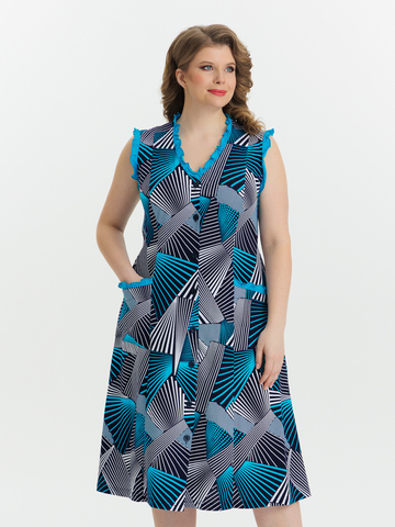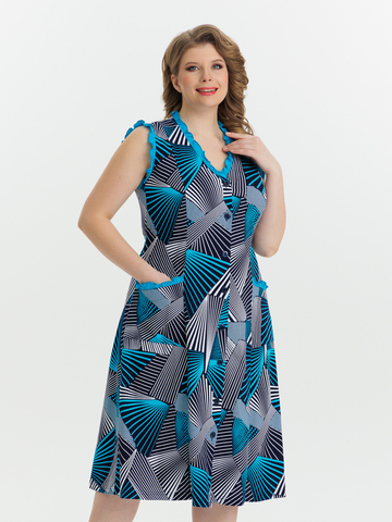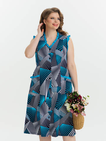 Стильный сарафан на пуговицах отлично подойдет как для дома, так и отдыха. Яркие цвета и декоративная отделка по V-образной горловине, пройме и карманам придают изделию изысканный вид, а пояс в боковых швах аккуратно подчеркивает талию.