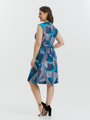 Стильный сарафан на молнии отлично подойдет как для дома, так и отдыха. Яркие цвета и декоративная отделка по горловине и плечам придают изделию изысканный вид, а пояс в боковых швах аккуратно подчеркивает талию.