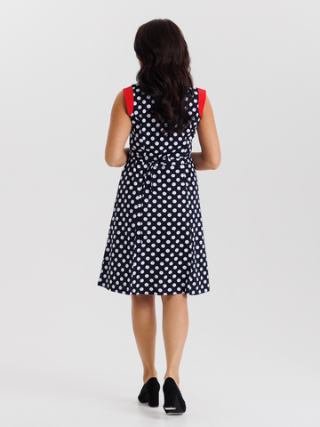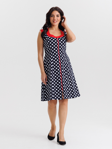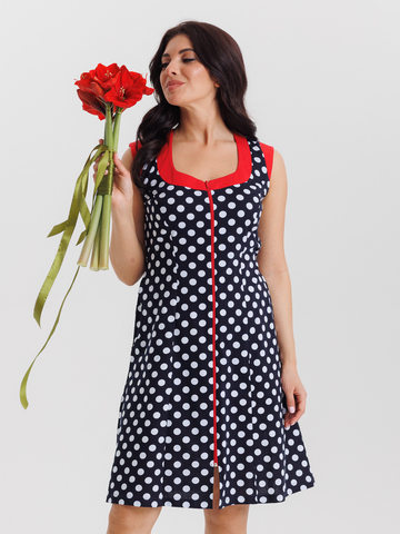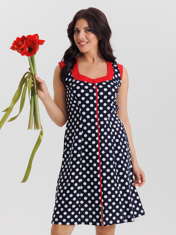 Стильный сарафан на молнии отлично подойдет как для дома, так и отдыха. Яркие цвета и декоративная отделка по горловине и плечам придают изделию изысканный вид, а пояс в боковых швах аккуратно подчеркивает талию.