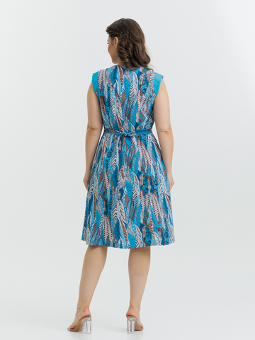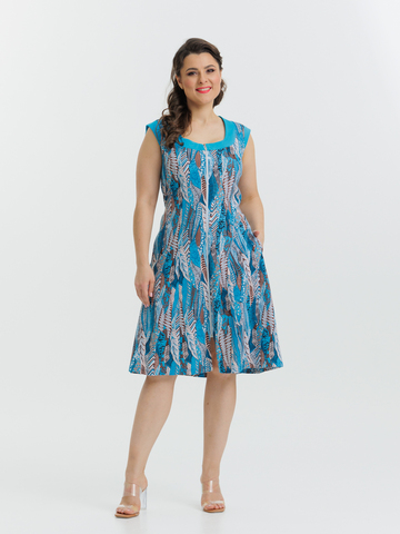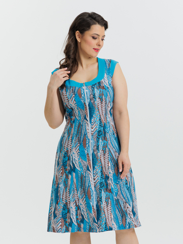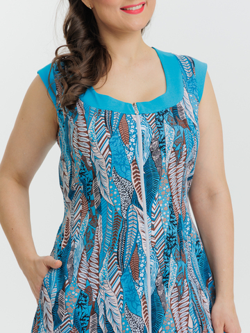 Стильный сарафан на молнии отлично подойдет как для дома, так и отдыха. Яркие цвета и декоративная отделка по горловине и плечам придают изделию изысканный вид, а пояс в боковых швах аккуратно подчеркивает талию.