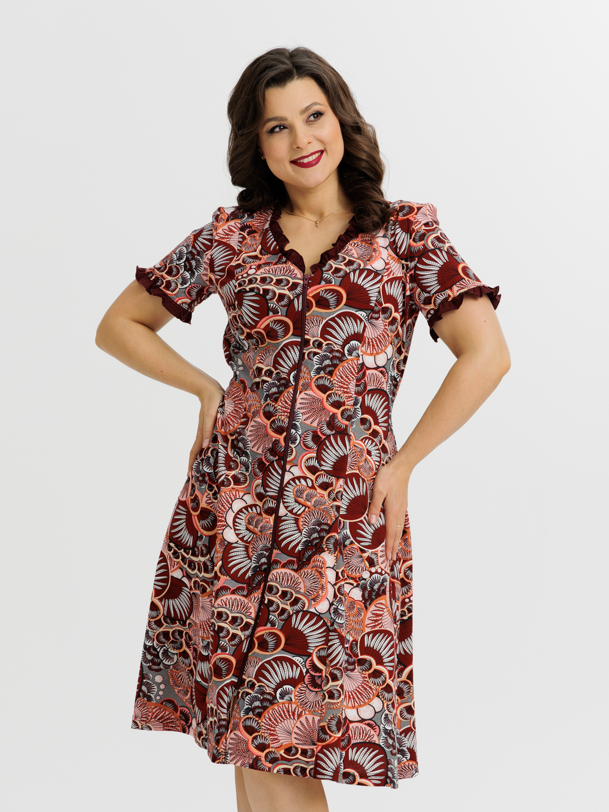 Стильный халат на молнии с карманами отлично подойдет как для дома, так и отдыха. Яркие цвета и декоративная отделка по V-образной горловине, рукавам придают изделию изысканный вид, а пояс в боковых швах аккуратно подчеркивает талию.