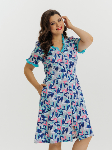 Стильный халат на молнии с карманами отлично подойдет как для дома, так и отдыха. Яркие цвета и декоративная отделка по V-образной горловине, рукавам придают изделию изысканный вид, а пояс в боковых швах аккуратно подчеркивает талию.
