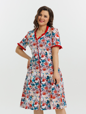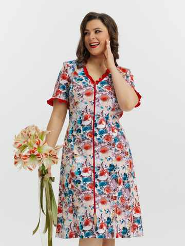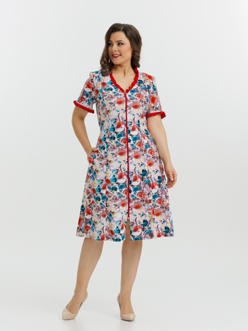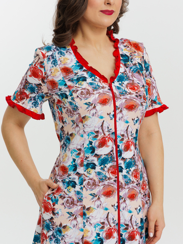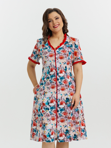 Стильный халат на молнии с карманами отлично подойдет как для дома, так и отдыха. Яркие цвета и декоративная отделка по V-образной горловине, рукавам придают изделию изысканный вид, а пояс в боковых швах аккуратно подчеркивает талию.