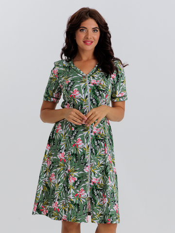 Стильный халат на молнии с карманами, отлично подойдет как для дома, так и отдыха. Яркие цвета и декоративная отделка кантом по V-образной горловине, рукавам, придают изделию изысканный вид, а пояс в боковых швах аккуратно подчеркивает талию.