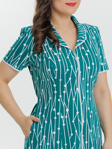 Стильный халат на молнии с карманами, отлично подойдет как для дома, так и отдыха. Яркие цвета и кант по воротнику, рукавам придают изделию изысканный вид, а пояс в боковых швах аккуратно подчеркивает талию.