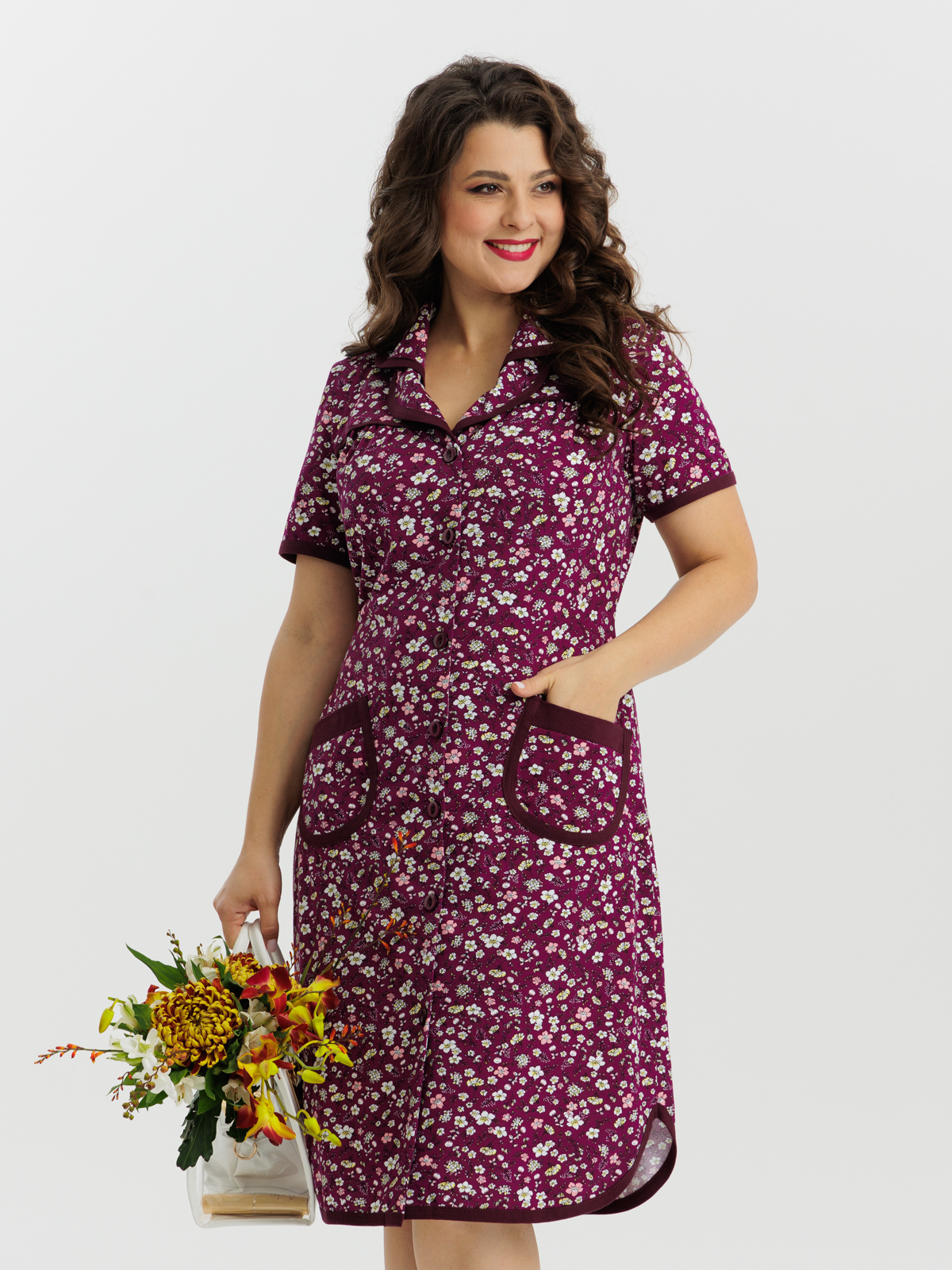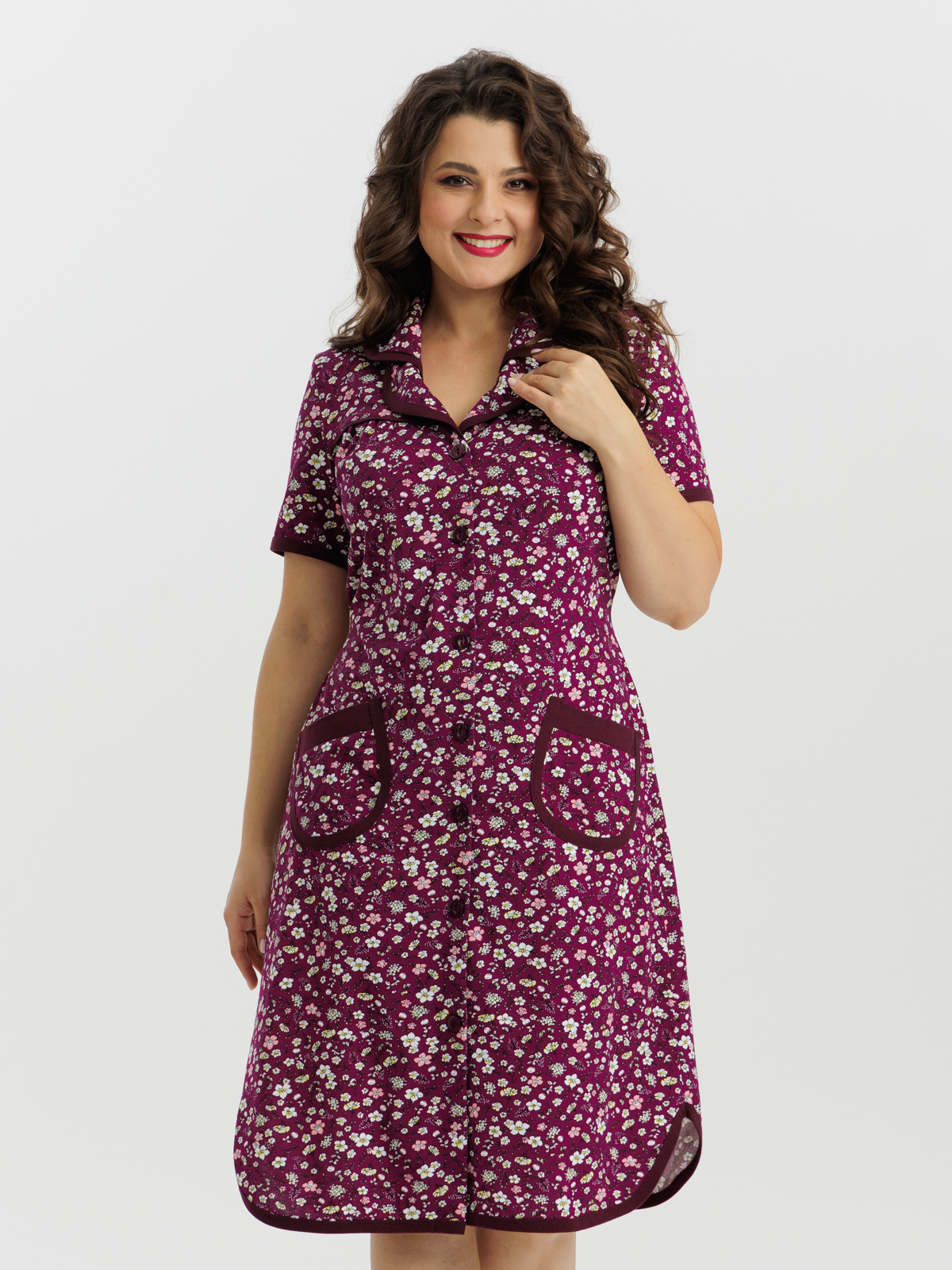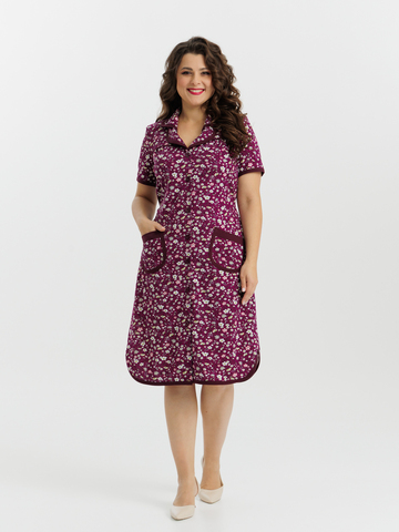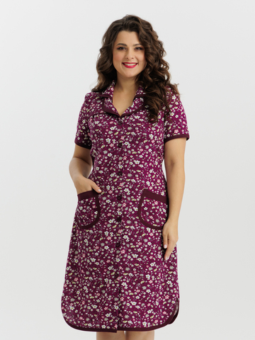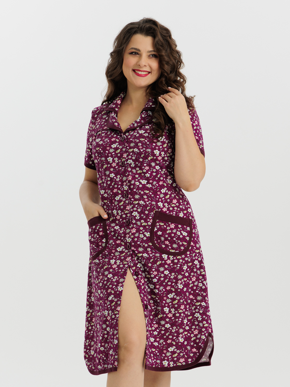 Стильный и комфортный халат прямого силуэта на пуговицах. Двойной воротник, короткие рукава, карманы, боковые разрезы и низ изделия отдекорированы бейкой. Пояс в боковых швах элегантно подчеркивает талию и создает изумительный образ.