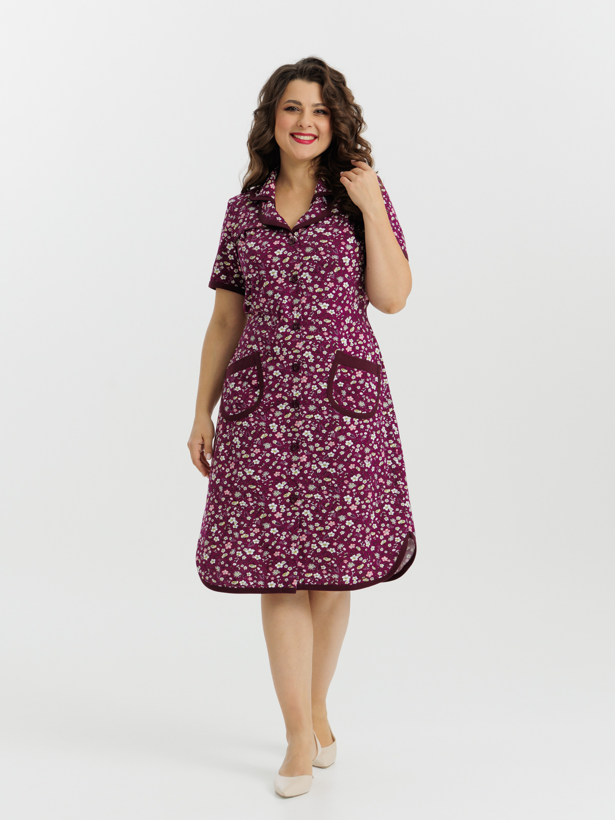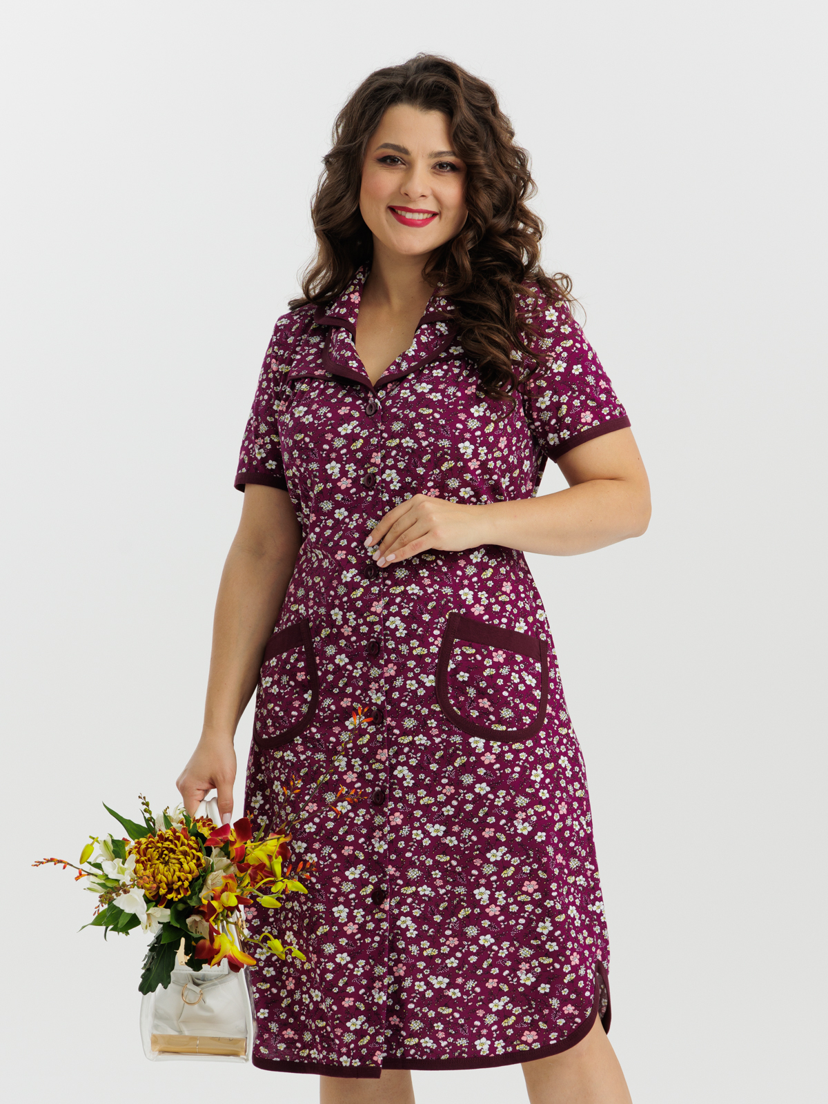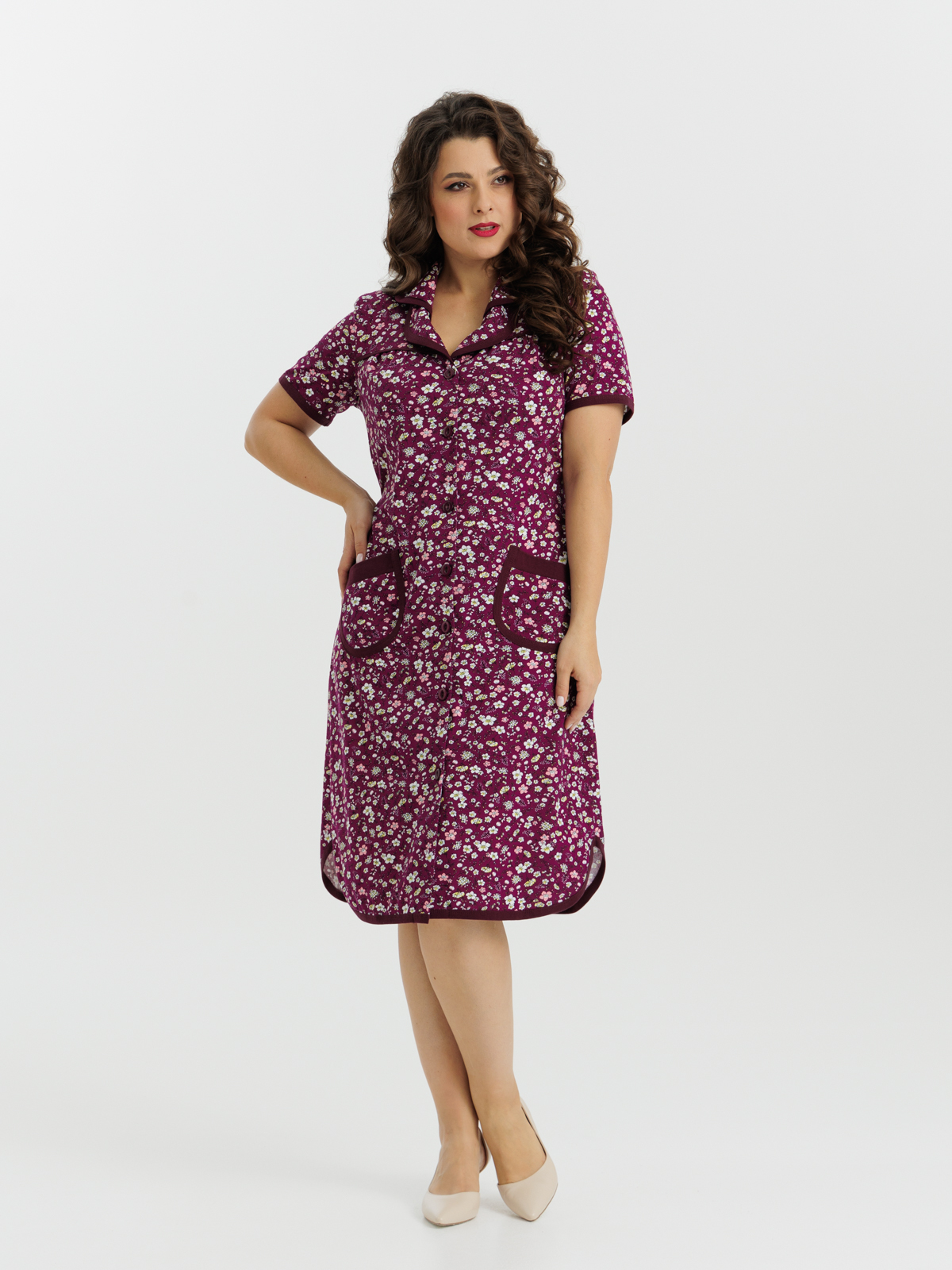 Стильный и комфортный халат прямого силуэта на пуговицах. Двойной воротник, короткие рукава, карманы, боковые разрезы и низ изделия отдекорированы бейкой. Пояс в боковых швах элегантно подчеркивает талию и создает изумительный образ.