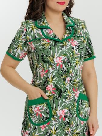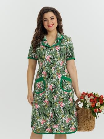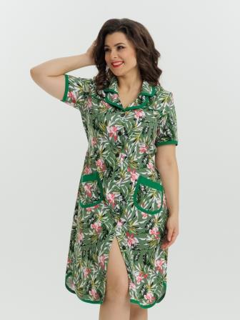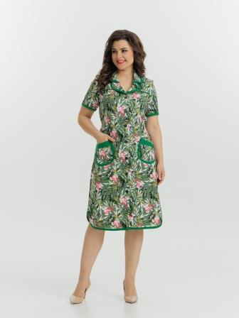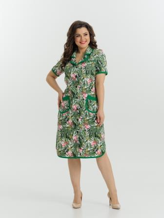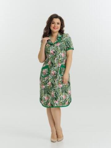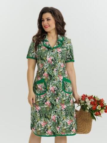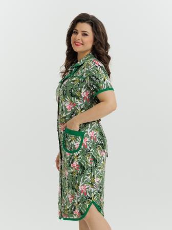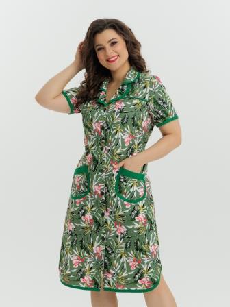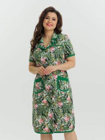 Стильный и комфортный халат прямого силуэта на пуговицах. Двойной воротник, короткие рукава, карманы, боковые разрезы и низ изделия отдекорированы бейкой. Пояс в боковых швах элегантно подчеркивает талию и создает изумительный образ.