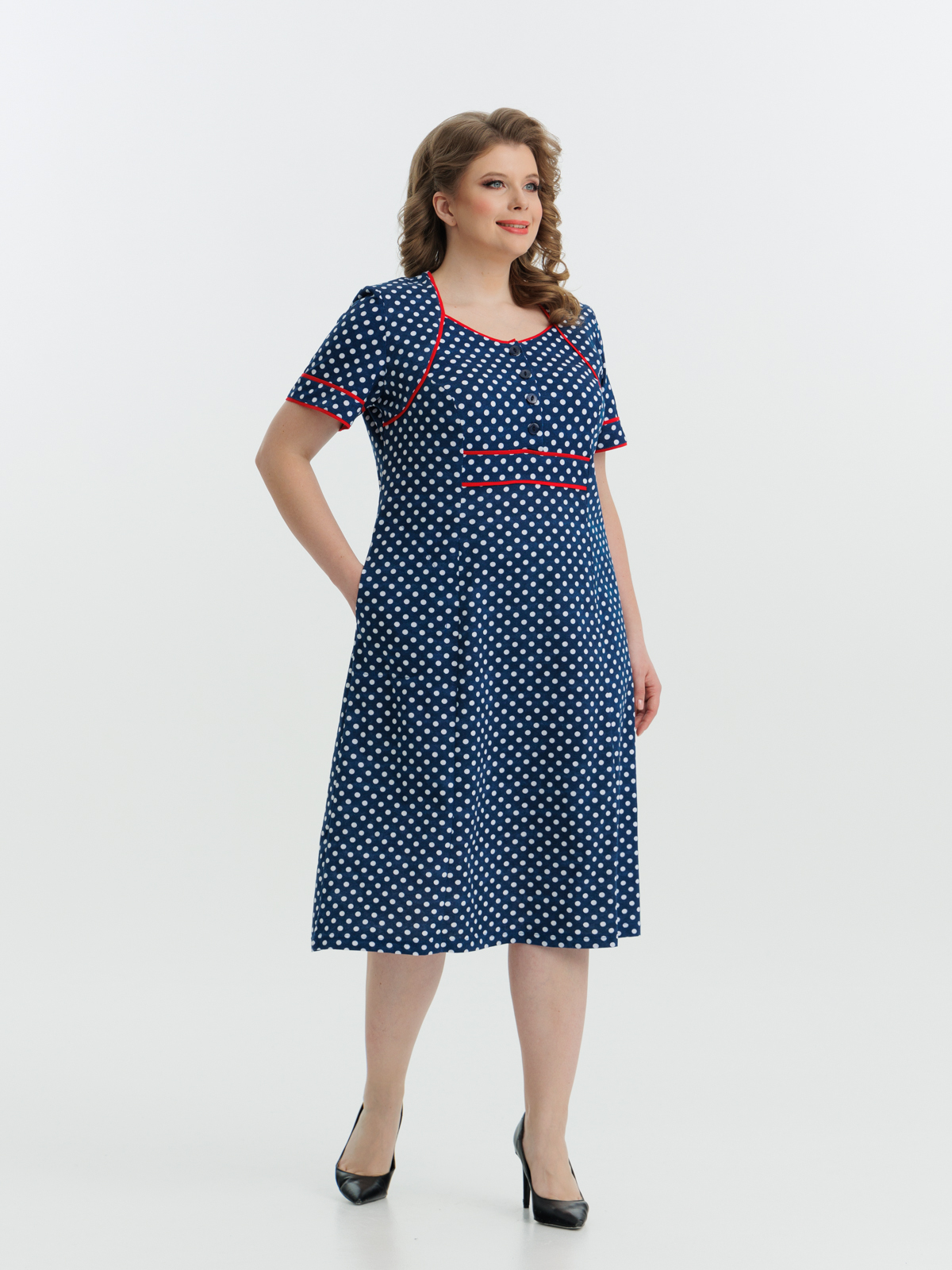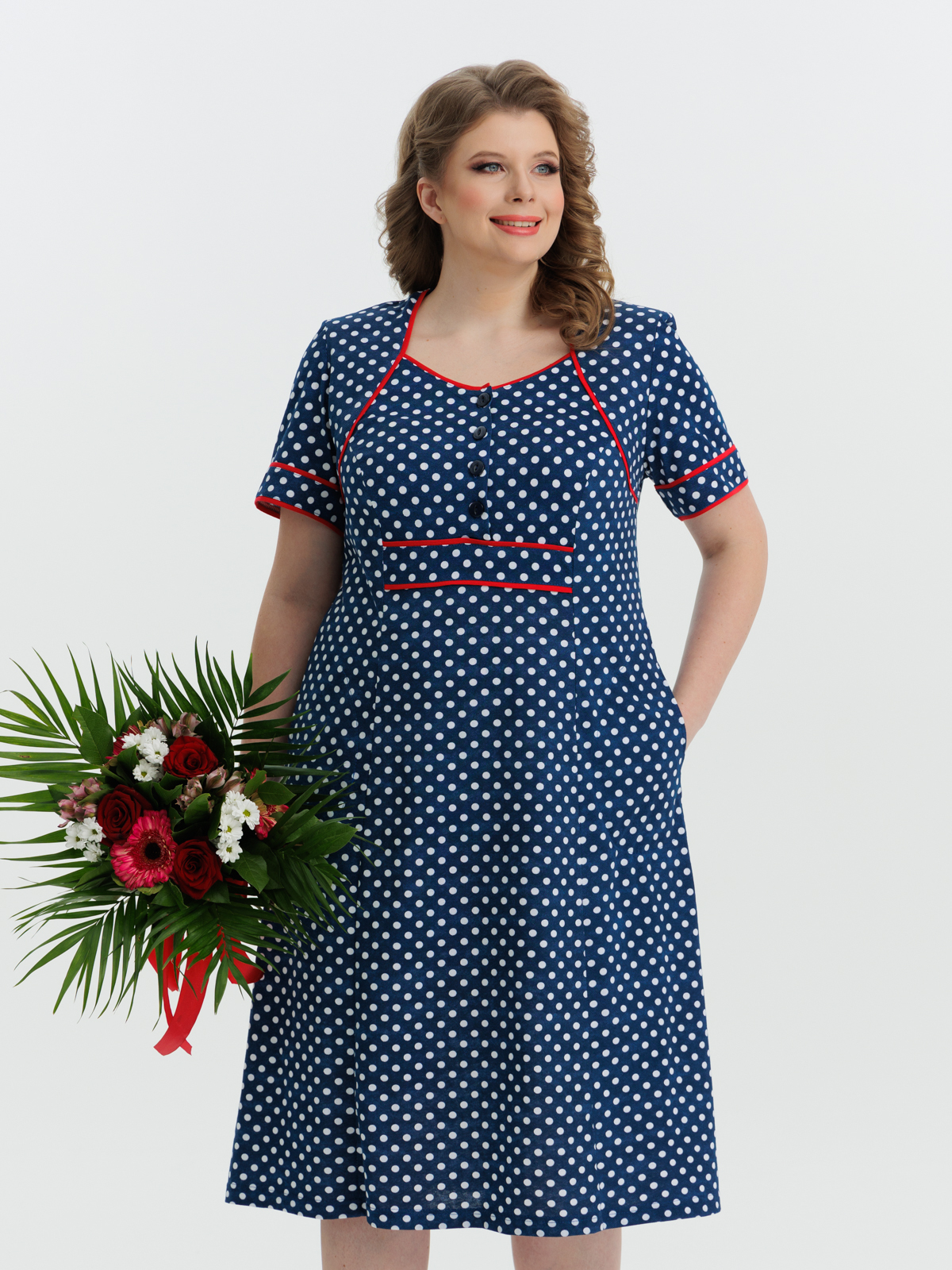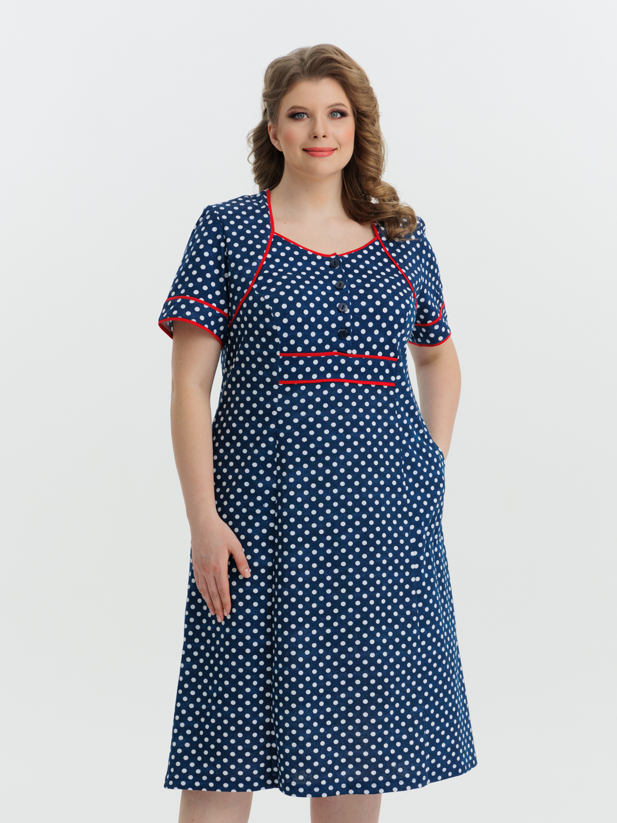 Стильное платье на четырех пуговицах с карманами. Яркие цвета и декоративная отделка придают изделию изысканный вид. Платье отлично подойдет как для дома, отдыха и особых случаев .