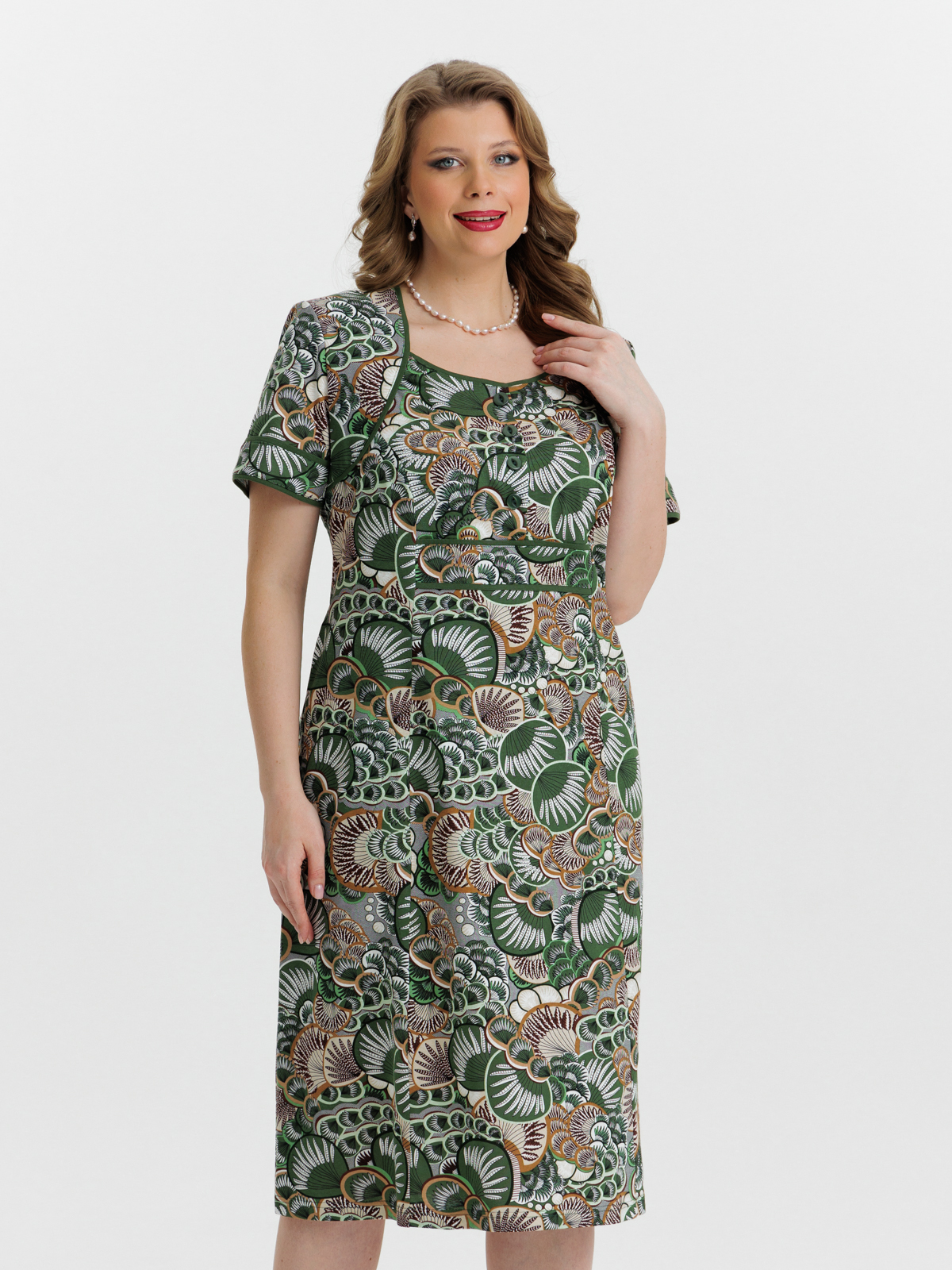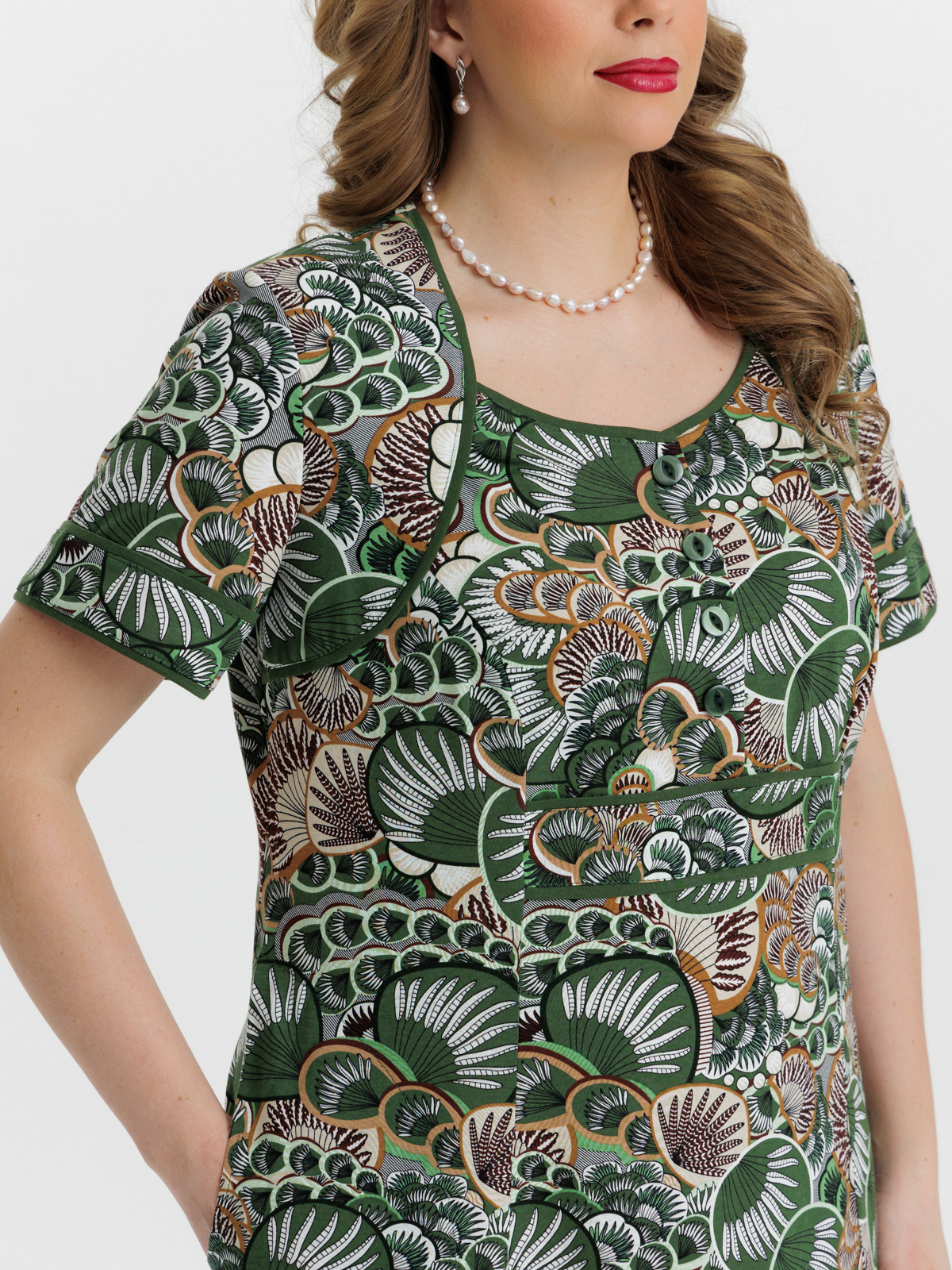 Стильное платье на четырех пуговицах с карманами. Яркие цвета и декоративная отделка придают изделию изысканный вид. Платье отлично подойдет как для дома, отдыха и особых случаев .