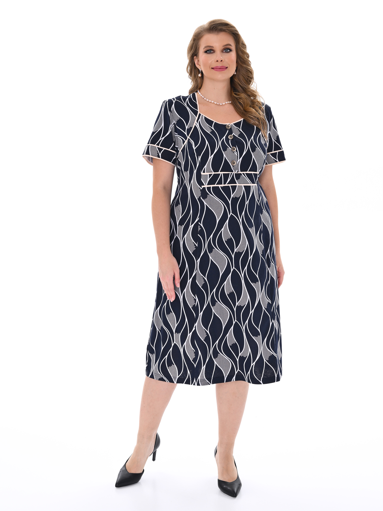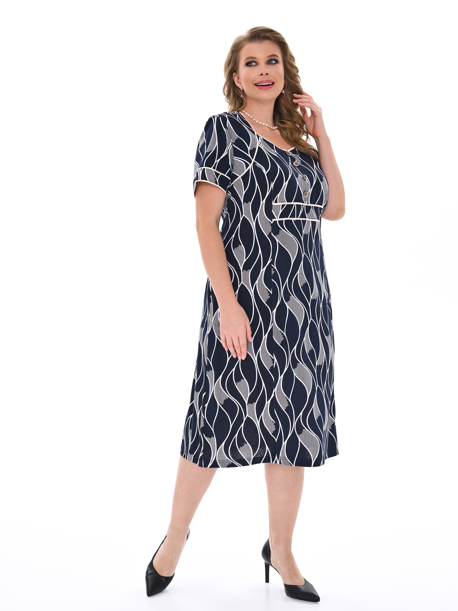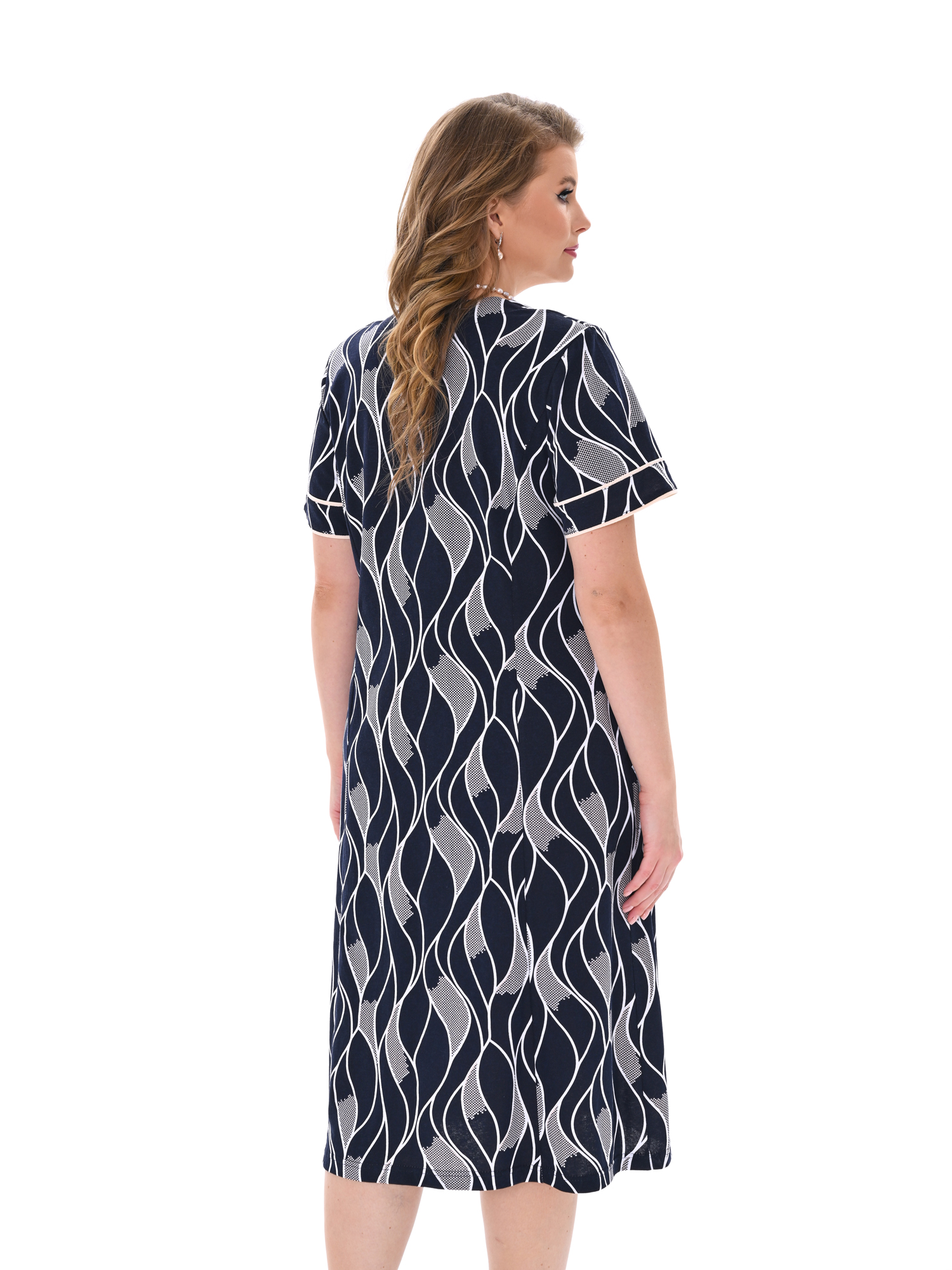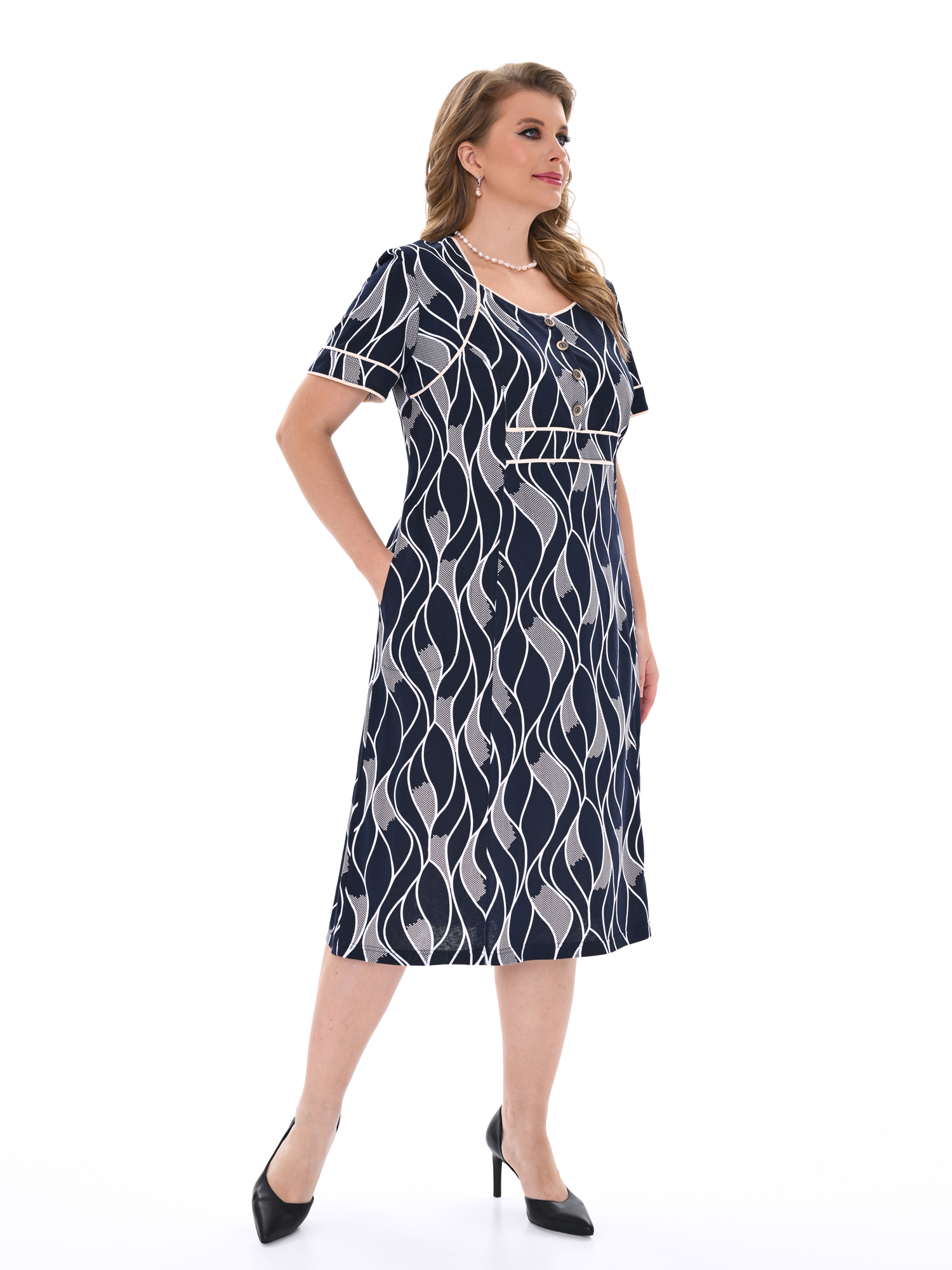 Стильное платье на четырех пуговицах с карманами. Яркие цвета и декоративная отделка придают изделию изысканный вид. Платье отлично подойдет как для дома, отдыха и особых случаев .