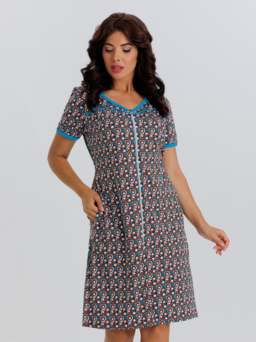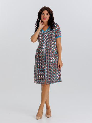 Стильный и яркий халат прямого силуэта на молнии. Модель с V-образным вырезом, карманами, с короткими рукавами отдекорирована однотонной бейкой. А пояс в боковых швах изящно подчеркивает талию. Идеально подходит как для дома, отдыха, так и на каждый день,